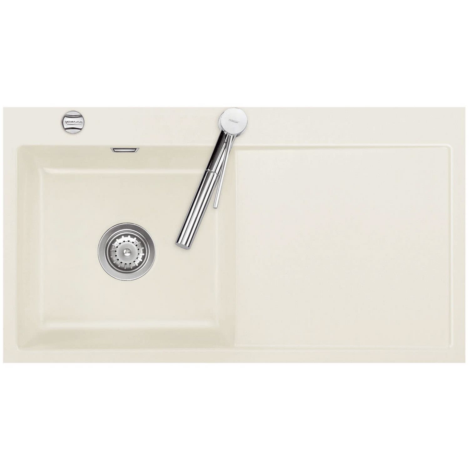 Systemceram Keradomo Mera 90 F Spüle links für flächenbündigen Einbau mit Excenterbetätigung, inkl. Armaturbohrung