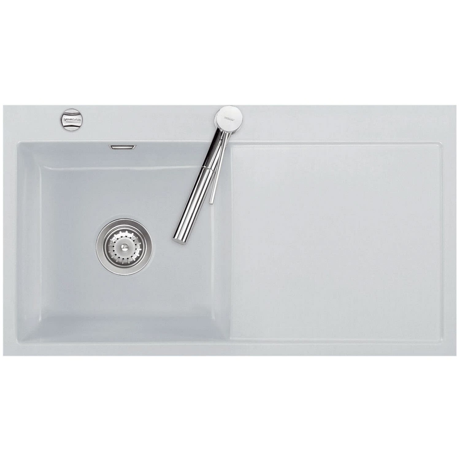 Systemceram Keradomo Mera 90 F Spüle links für flächenbündigen Einbau mit Excenterbetätigung, inkl. Armaturbohrung