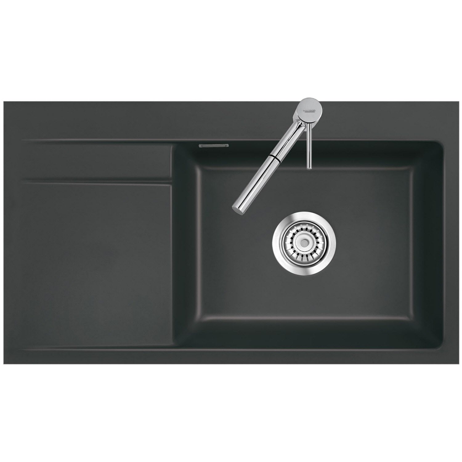 Systemceram Keradomo Stema 86 SL/ F Spüle rechts für flächenbündigen Einbau mit Handbetätigung, inkl. Armaturbohrung