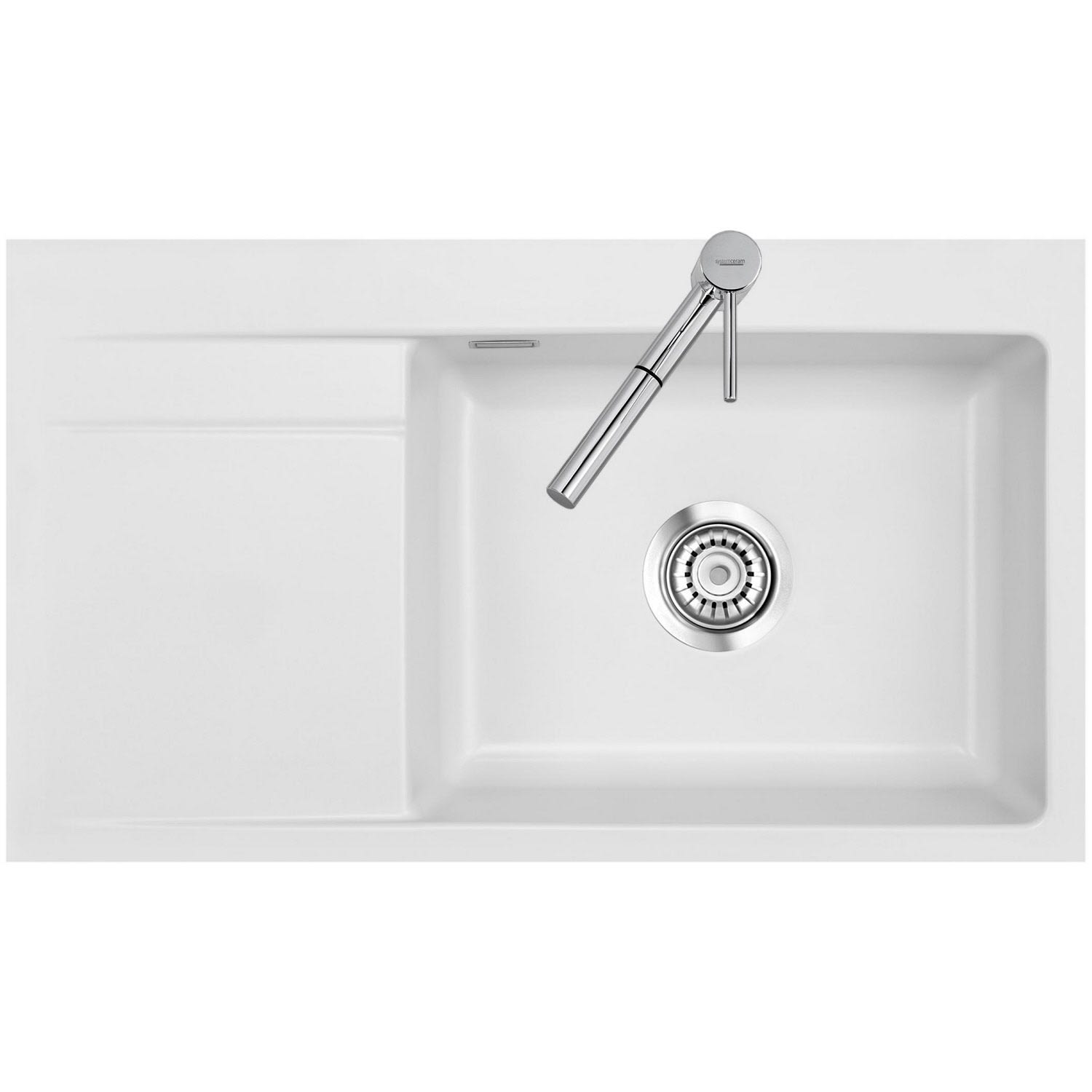 Systemceram Keradomo Stema 86 SL/ F Spüle rechts für flächenbündigen Einbau mit Handbetätigung, inkl. Armaturbohrung