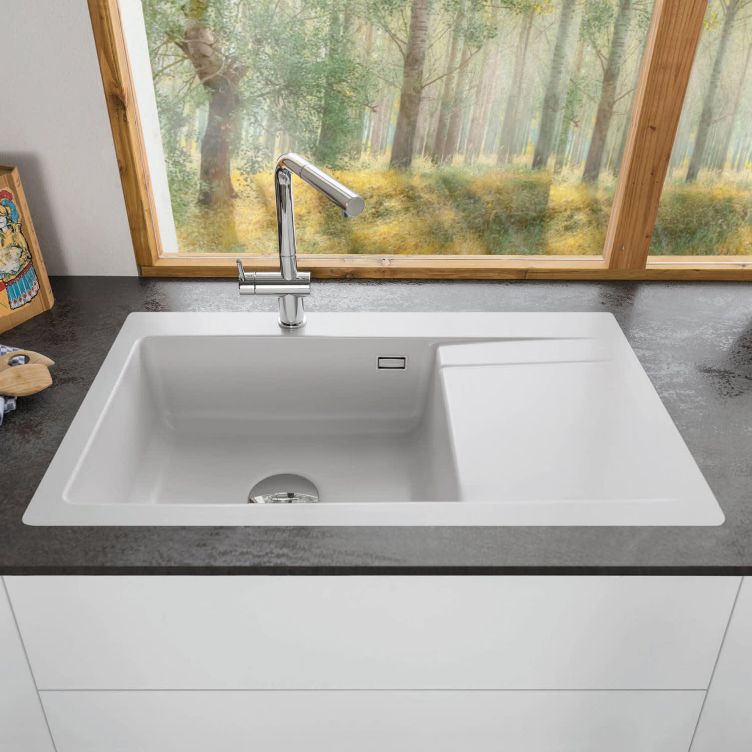 Systemceram Keradomo Stema 86 SL/ F Spüle links für flächenbündigen Einbau mit Handbetätigung, inkl. Armaturbohrung