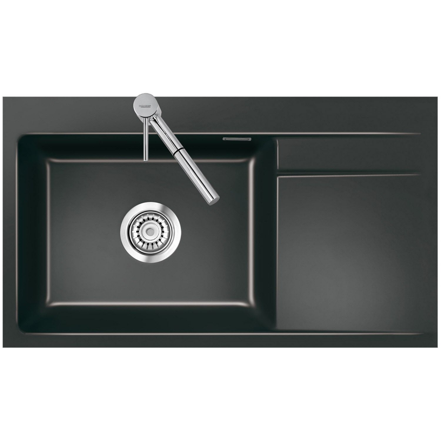 Systemceram Keradomo Stema 86 SL/ F Spüle links für flächenbündigen Einbau mit Handbetätigung, inkl. Armaturbohrung