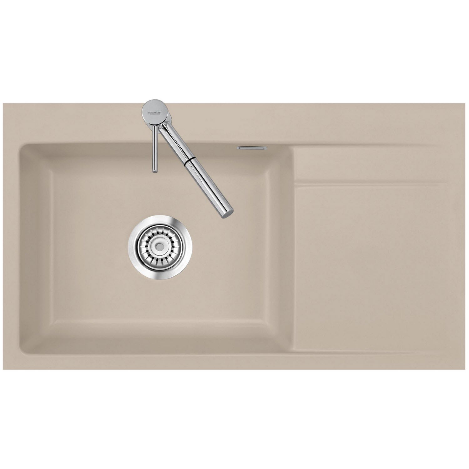 Systemceram Keradomo Stema 86 SL/ F Spüle links für flächenbündigen Einbau mit Handbetätigung, inkl. Armaturbohrung