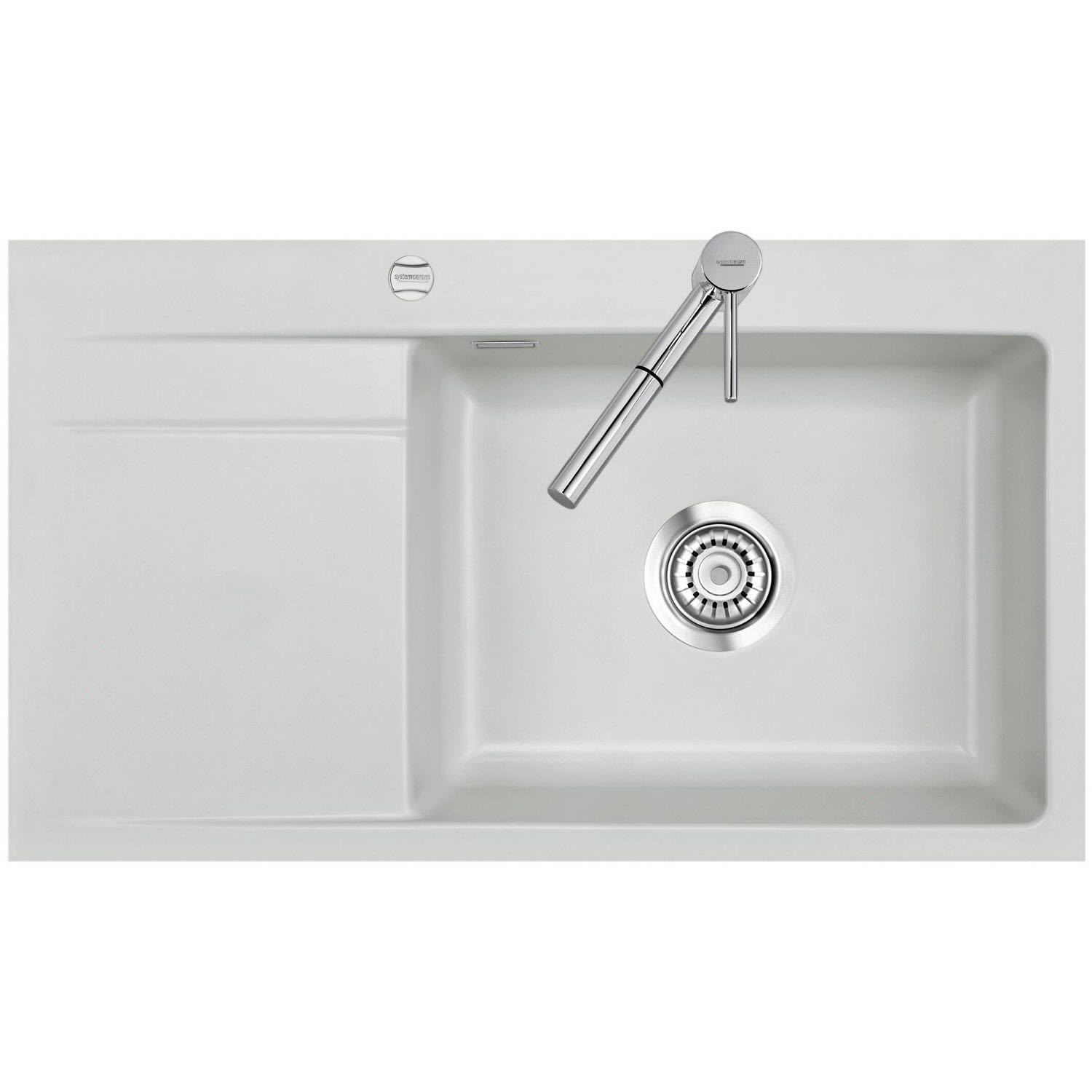 Systemceram Keradomo Stema 86 SL/ F Spüle rechts für flächenbündigen Einbau mit Excenterbetätigung, inkl. Armaturbohrung