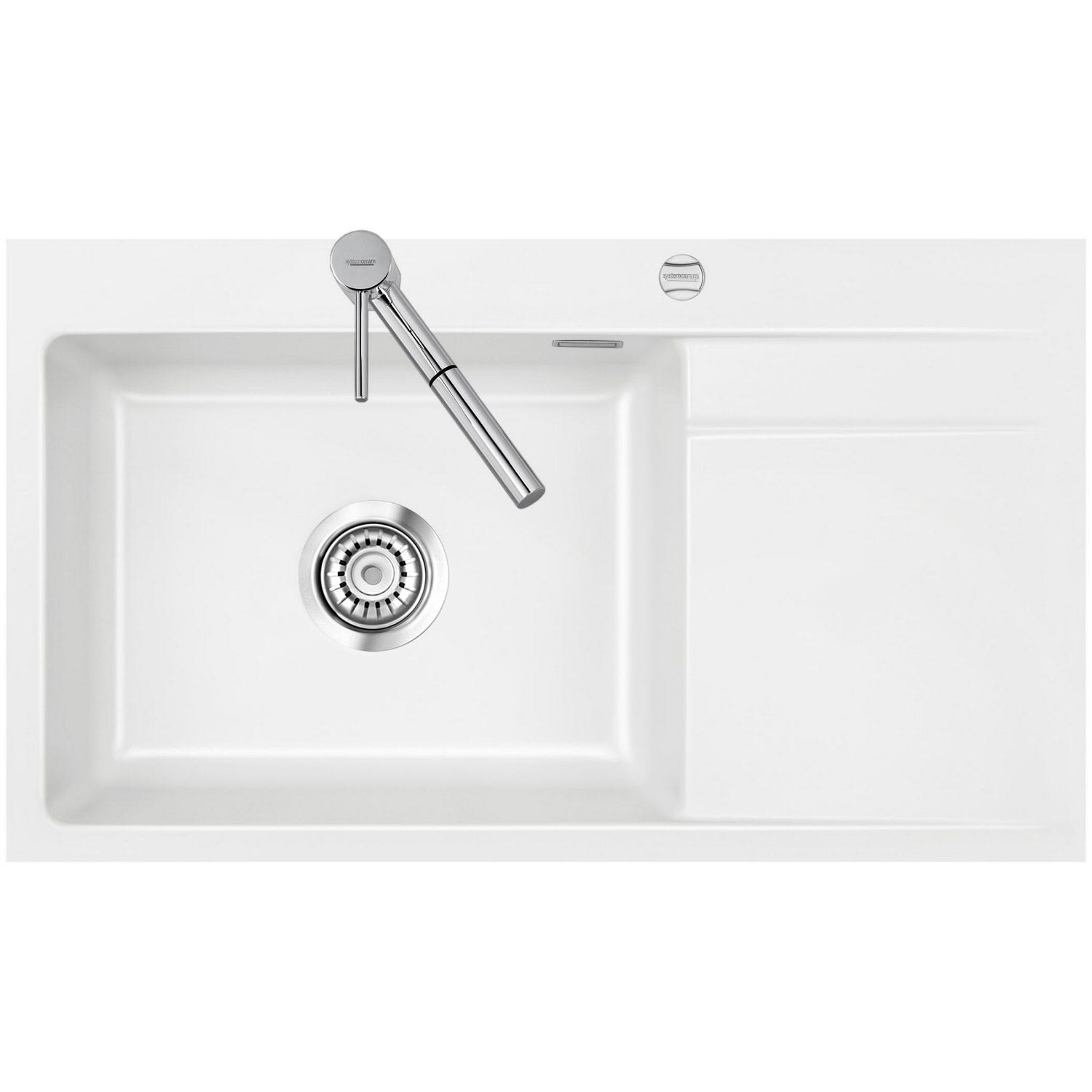 Systemceram Keradomo Stema 86 SL/ F Spüle links für flächenbündigen Einbau mit Excenterbetätigung, inkl. Armaturbohrung