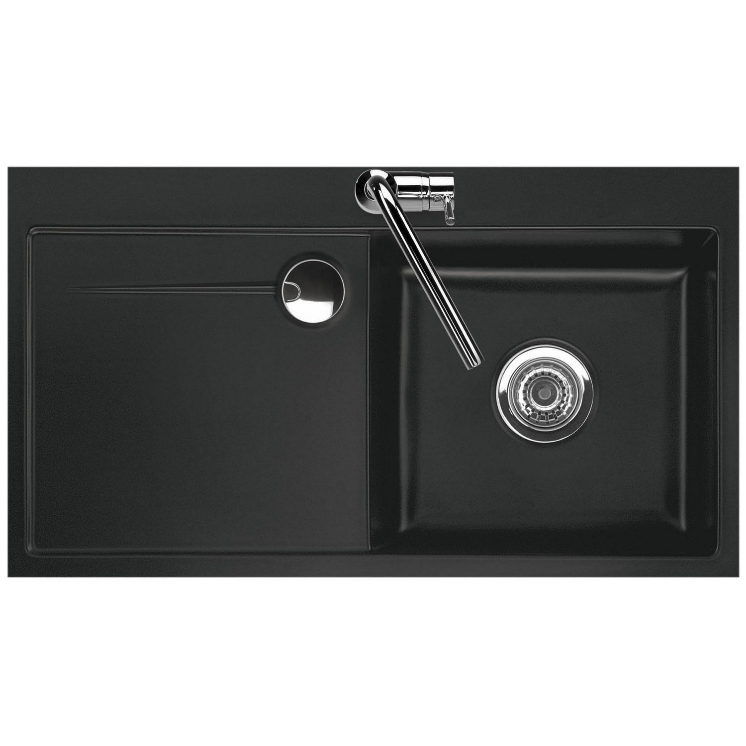 Systemceram Keradomo Stema 90 F Spüle rechts für flächenbündigen Einbau mit Handbetätigung, inkl. Armaturbohrung