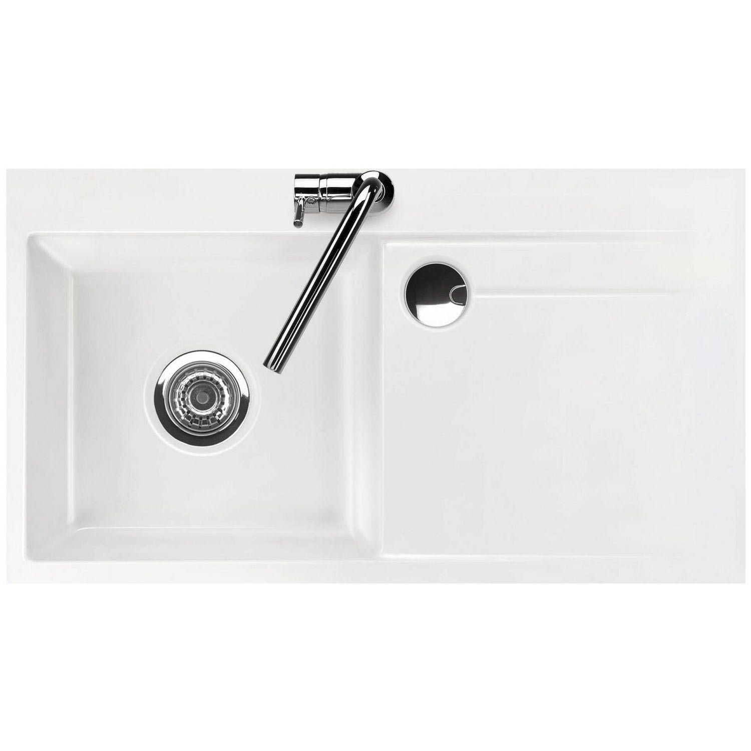 Systemceram Keradomo Stema 90 F Spüle links für flächenbündigen Einbau mit Handbetätigung, inkl. Armaturbohrung