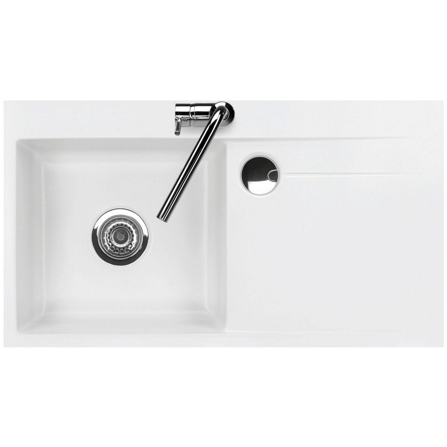 Systemceram Keradomo Stema 90 F Spüle links für flächenbündigen Einbau mit Handbetätigung, inkl. Armaturbohrung