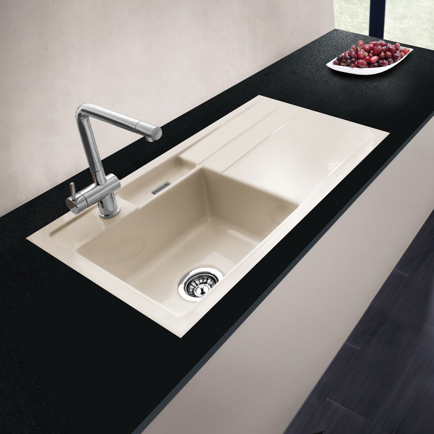 Systemceram Keradomo Bela 100 F Spüle links für flächenbündigen Einbau mit Handbetätigung, inkl. Armaturbohrung