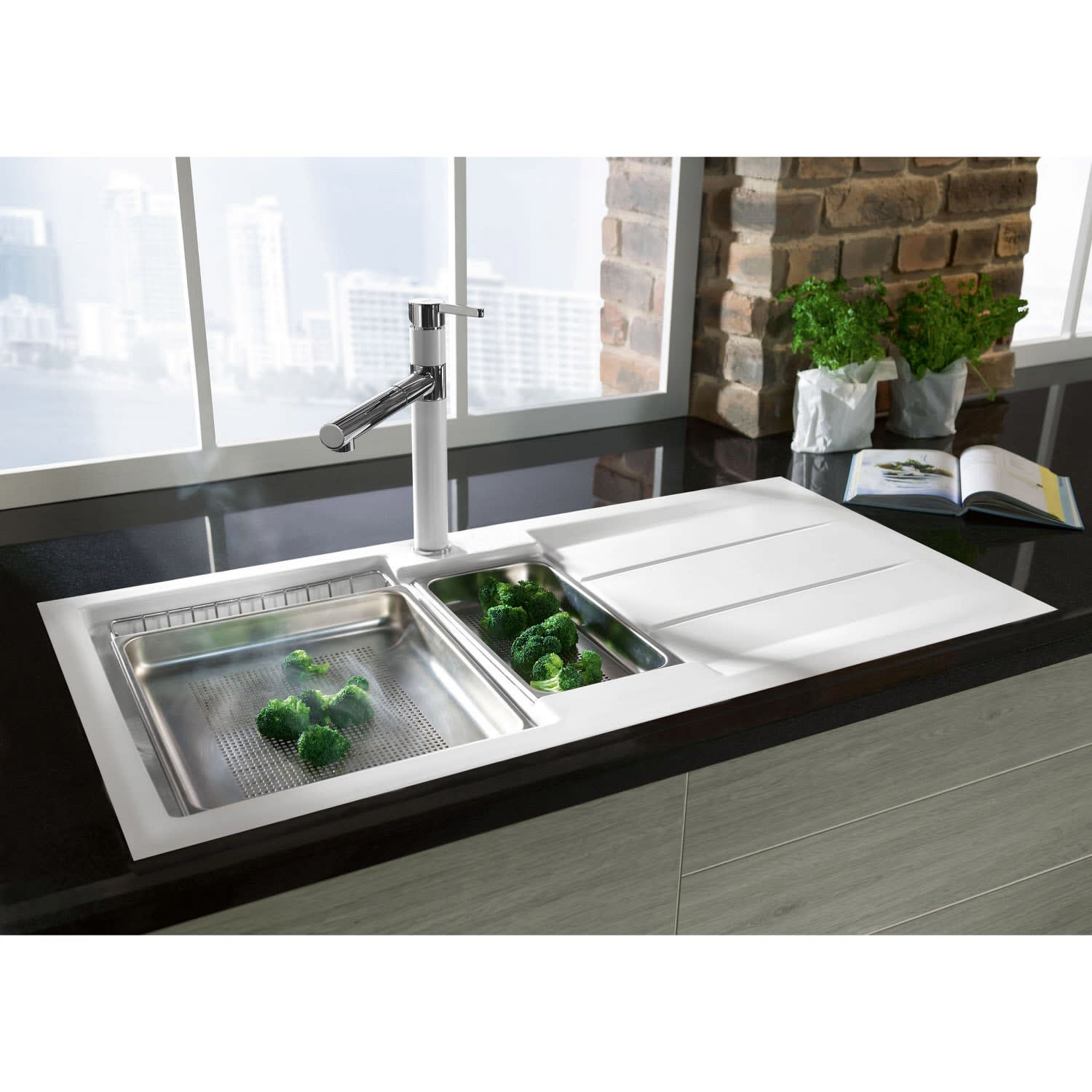 - Spüle ist reversibel (Becken links oder rechts)