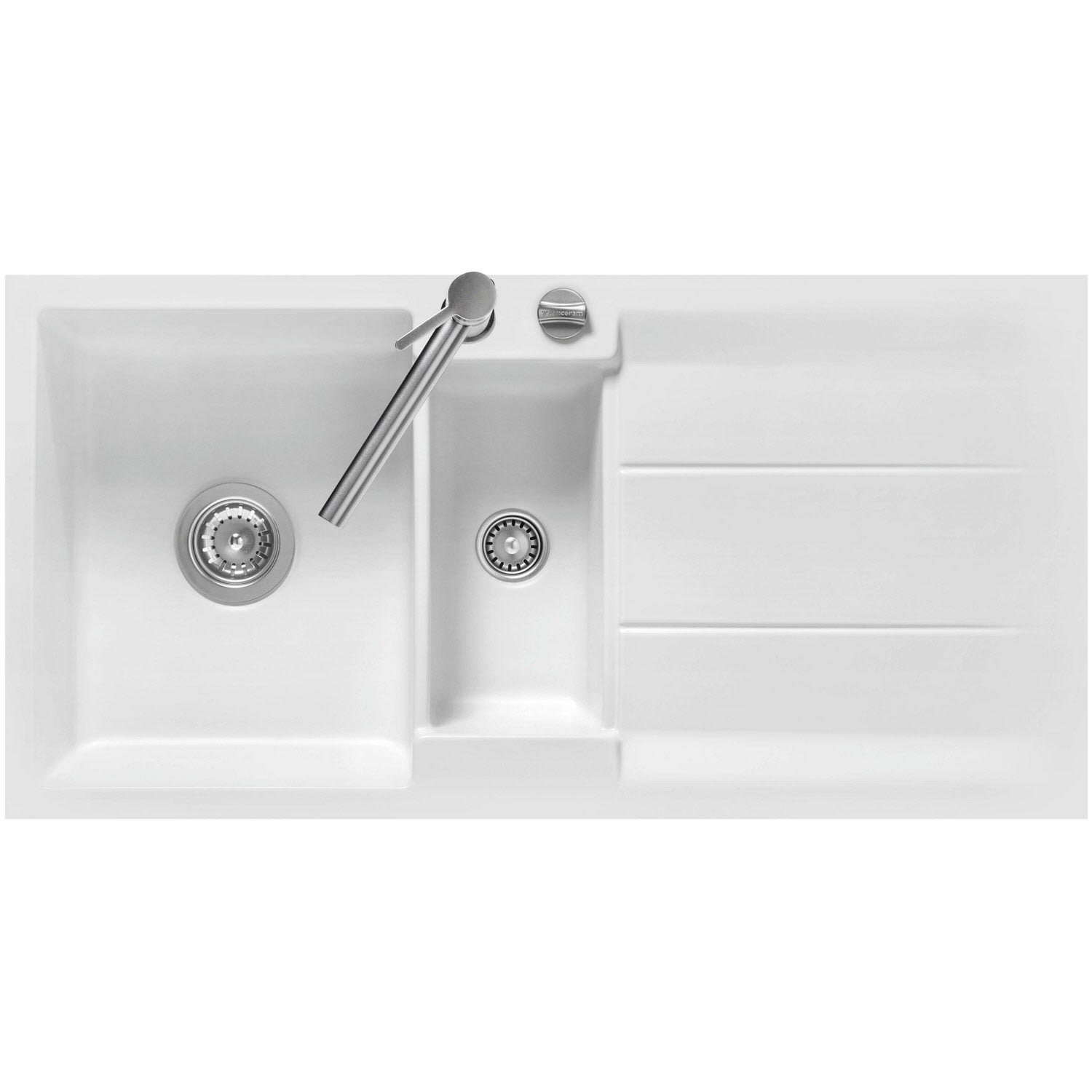 Systemceram Keradomo Genea 100 F Spüle reversibel für flächenbündigen Einbau mit Excenterbetätigung, ohne Hahnlochbohrung