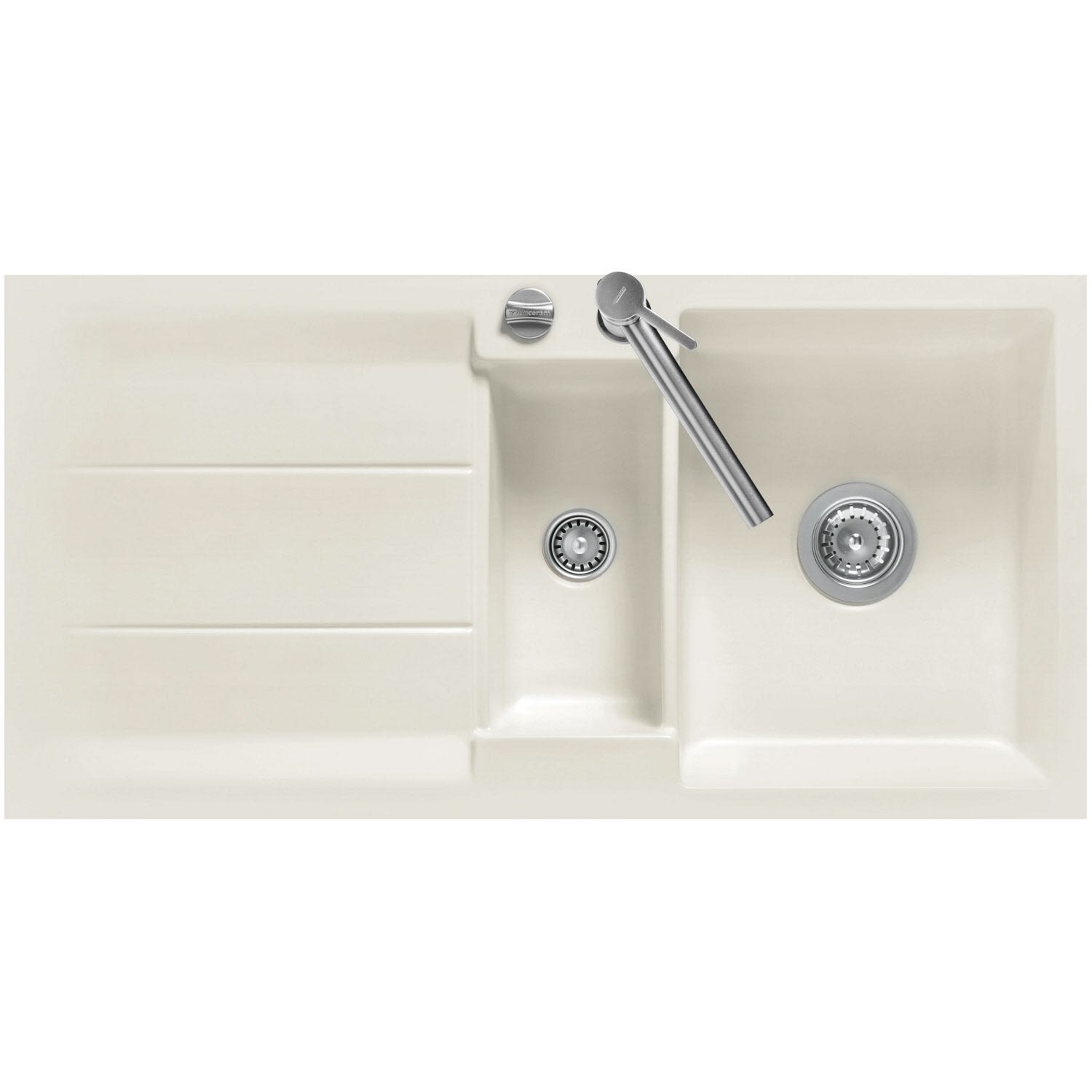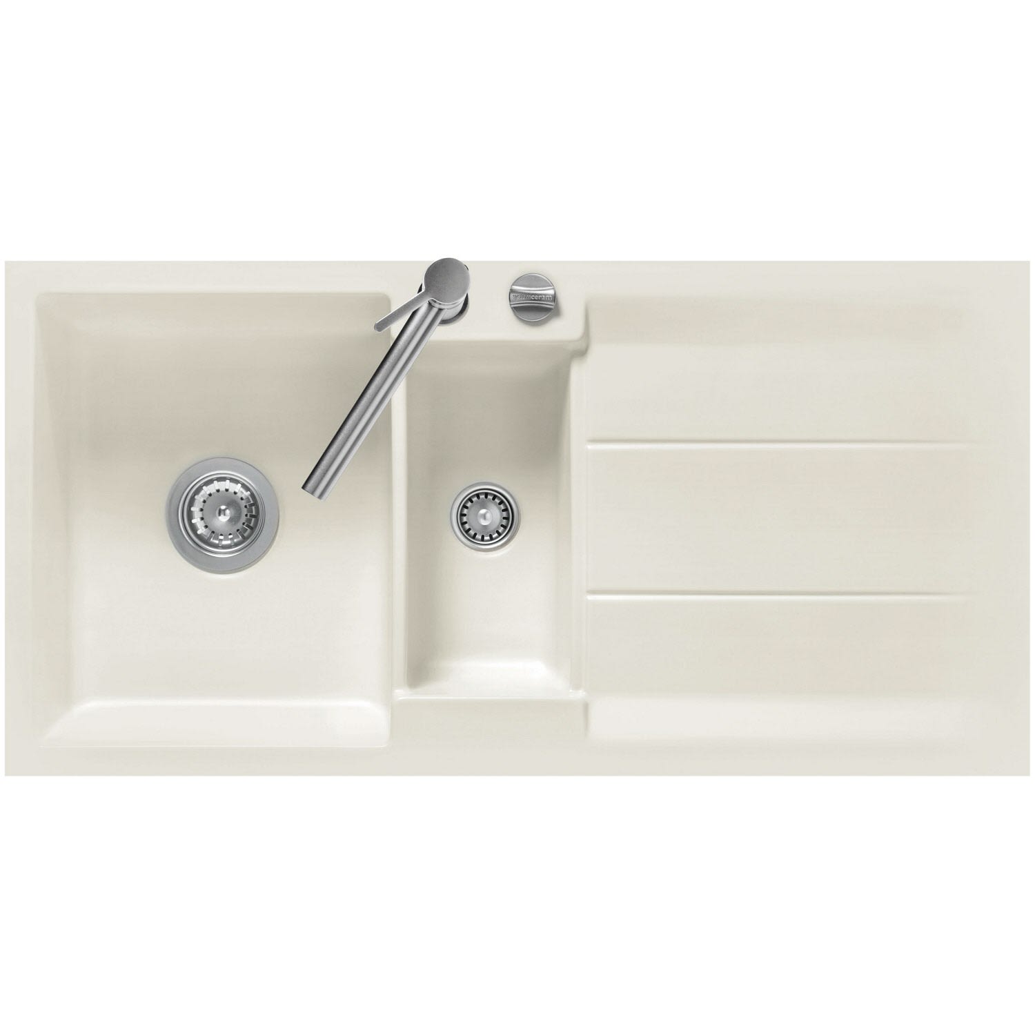 Systemceram Keradomo Genea 100 F Spüle reversibel für flächenbündigen Einbau mit Excenterbetätigung, ohne Hahnlochbohrung
