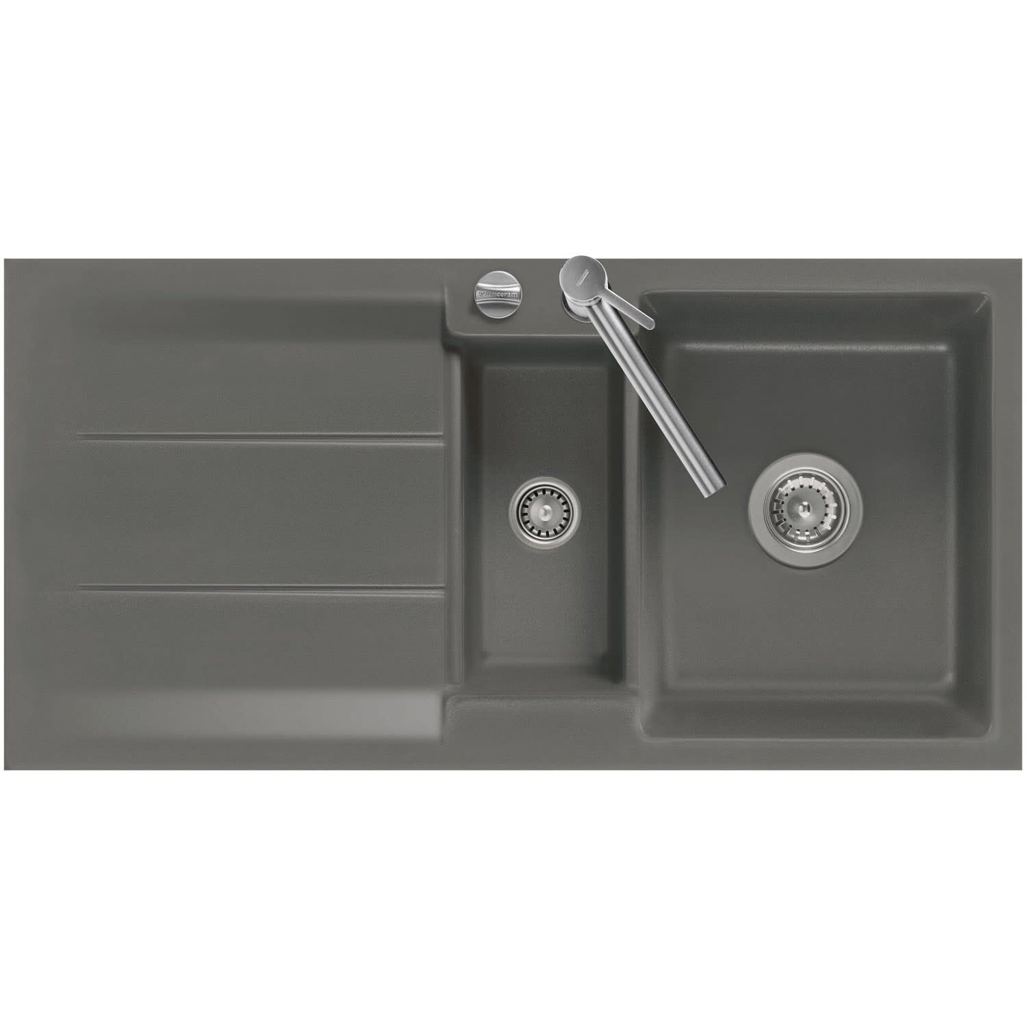 Systemceram Keradomo Genea 100 F Spüle reversibel für flächenbündigen Einbau mit Excenterbetätigung, ohne Hahnlochbohrung