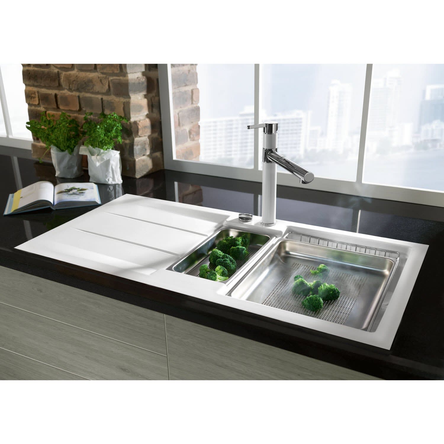 Systemceram Keradomo Genea 100 F Spüle reversibel für flächenbündigen Einbau mit Excenterbetätigung, ohne Hahnlochbohrung