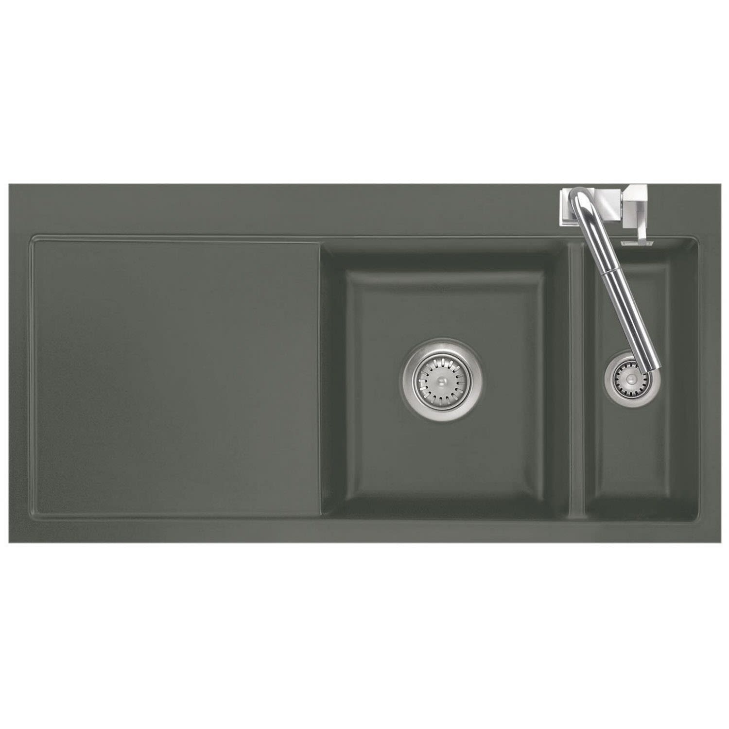 Systemceram Keradomo Mera 100 F Spüle rechts für flächenbündigen Einbau mit Handbetätigung, inkl. Armaturbohrung