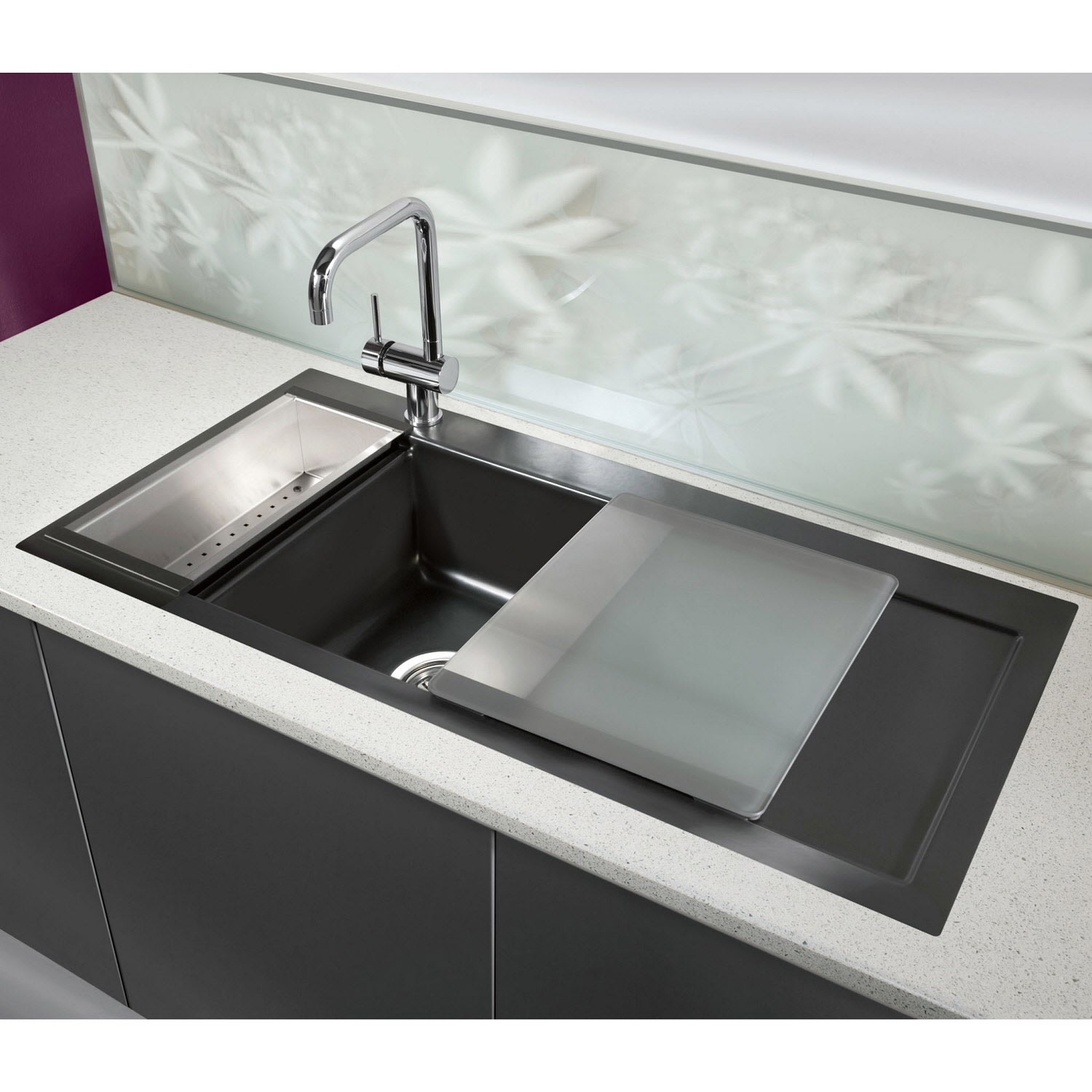 Systemceram Keradomo Mera 100 F Spüle links für flächenbündigen Einbau mit Handbetätigung, inkl. Armaturbohrung