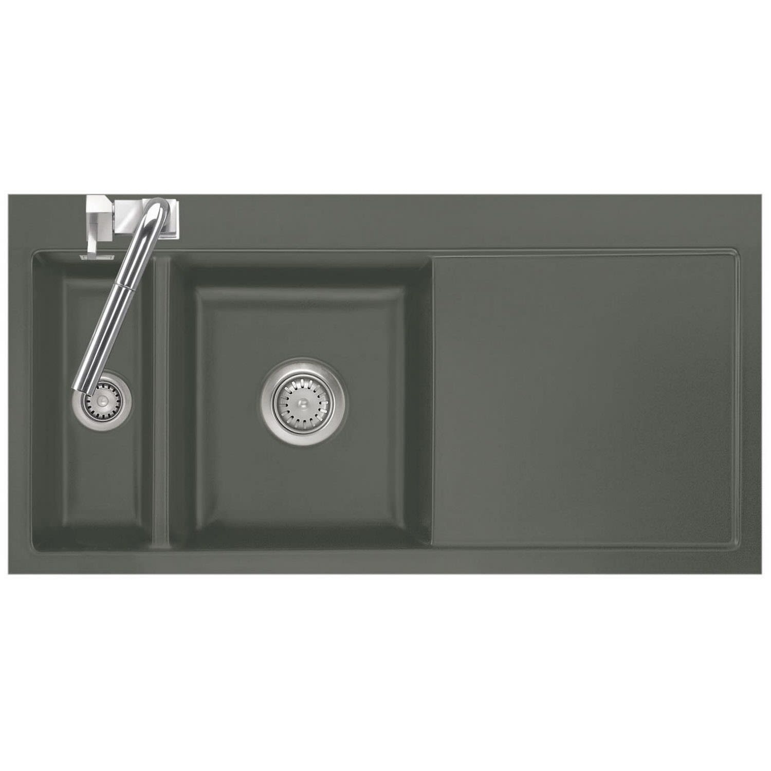 Systemceram Keradomo Mera 100 F Spüle links für flächenbündigen Einbau mit Handbetätigung, inkl. Armaturbohrung