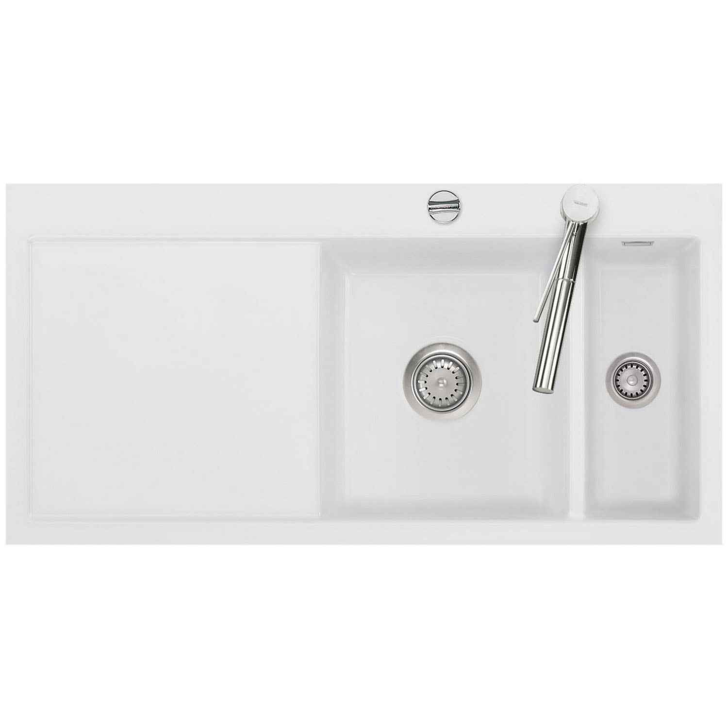 Systemceram Keradomo Mera 100 F Spüle rechts für flächenbündigen Einbau mit Excenterbetätigung, inkl. Armaturbohrung