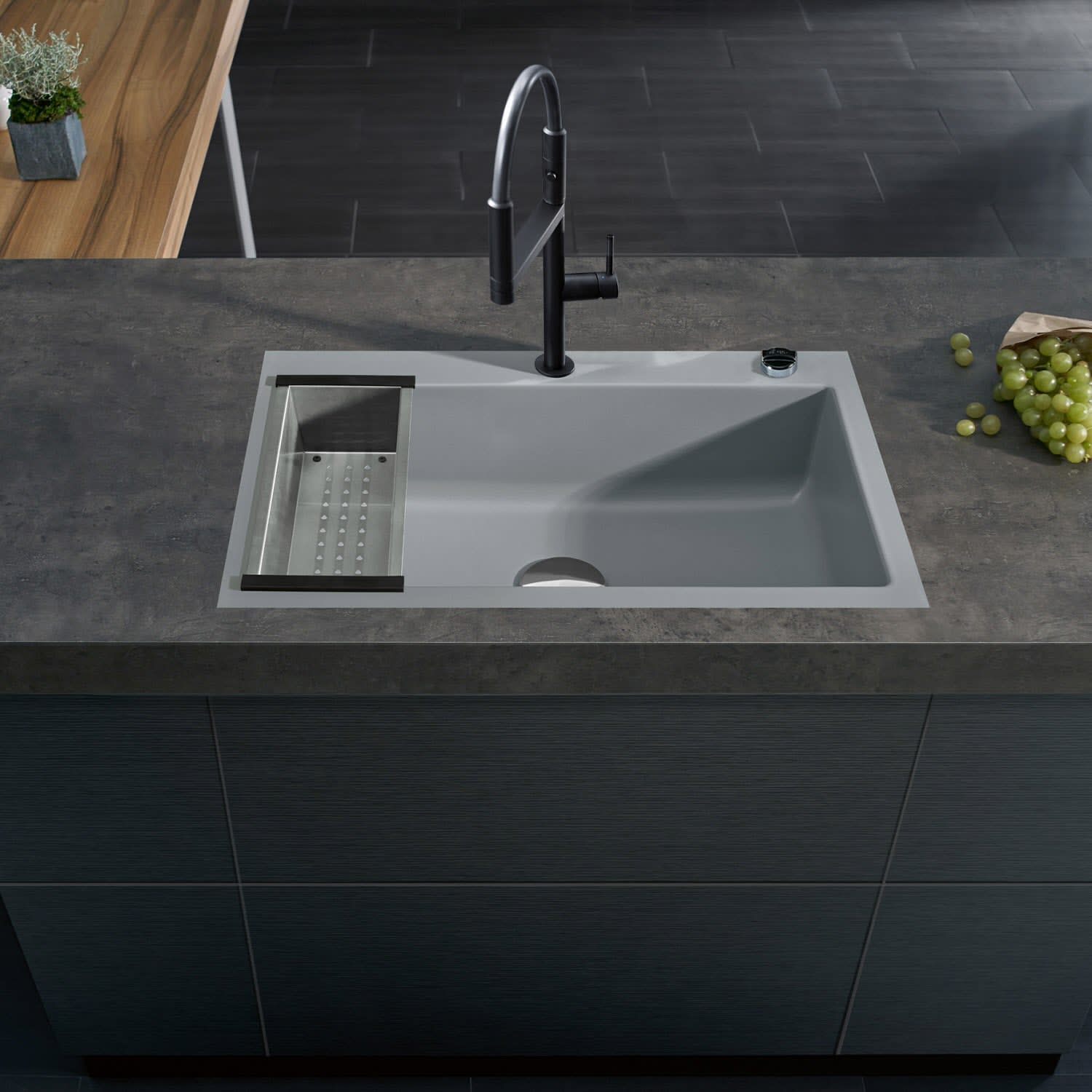 Systemceram Keradomo Mera 80 F Spüle für flächenbündigen Einbau mit Excenterbetätigung, inkl. Armaturbohrung