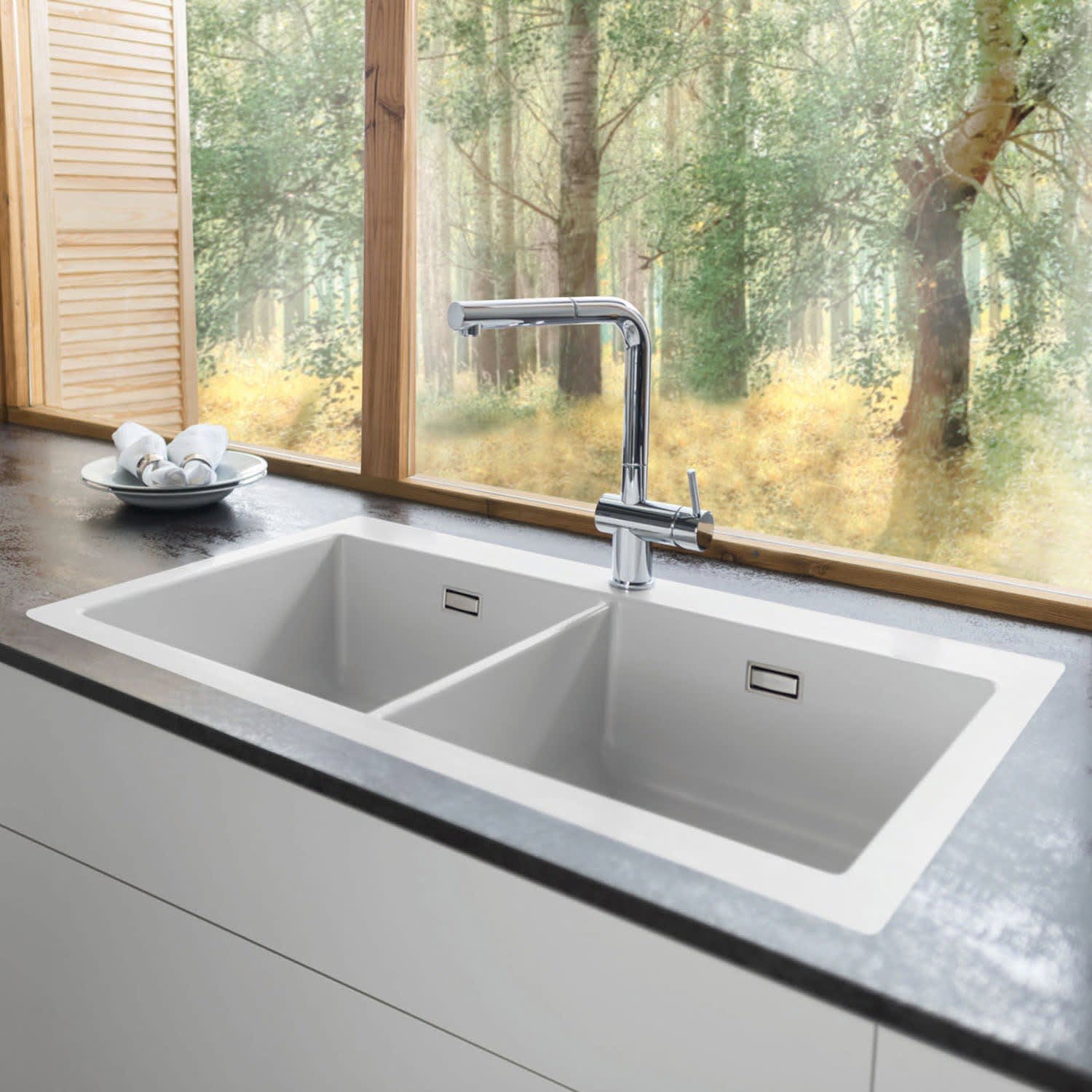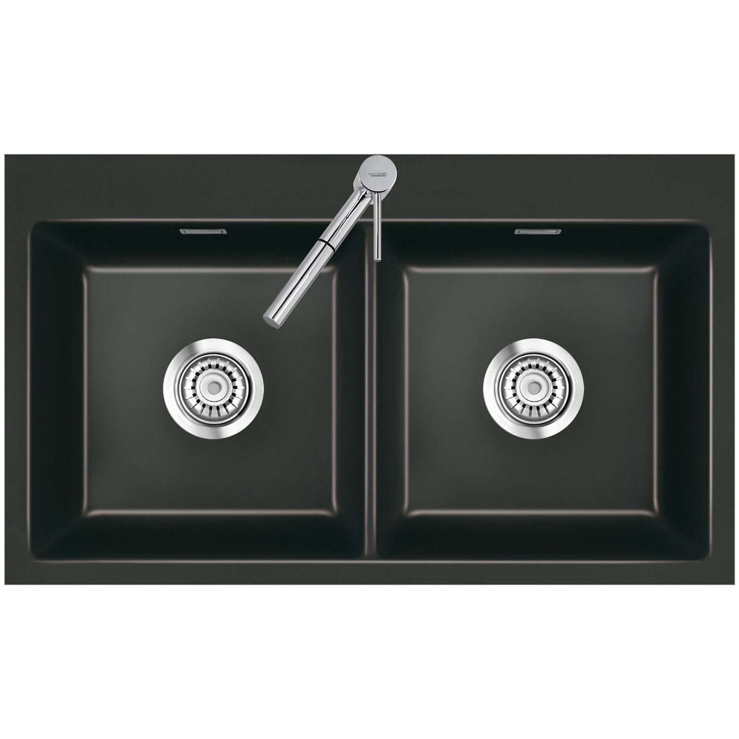 Systemceram Keradomo Mera Twin F Spüle für flächenbündigen Einbau mit Handbetätigung, inkl. Armaturbohrung