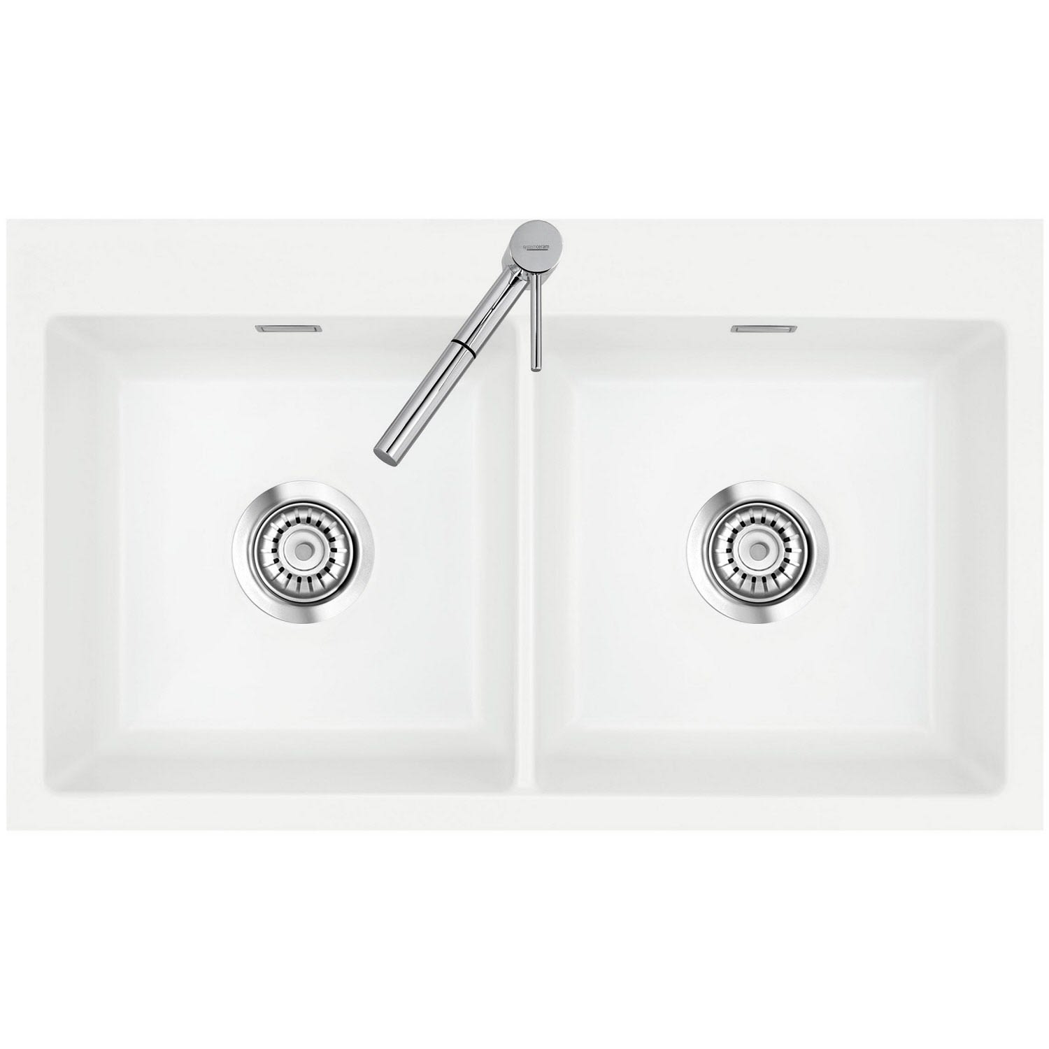 Systemceram Keradomo Mera Twin F Spüle für flächenbündigen Einbau mit Handbetätigung, inkl. Armaturbohrung