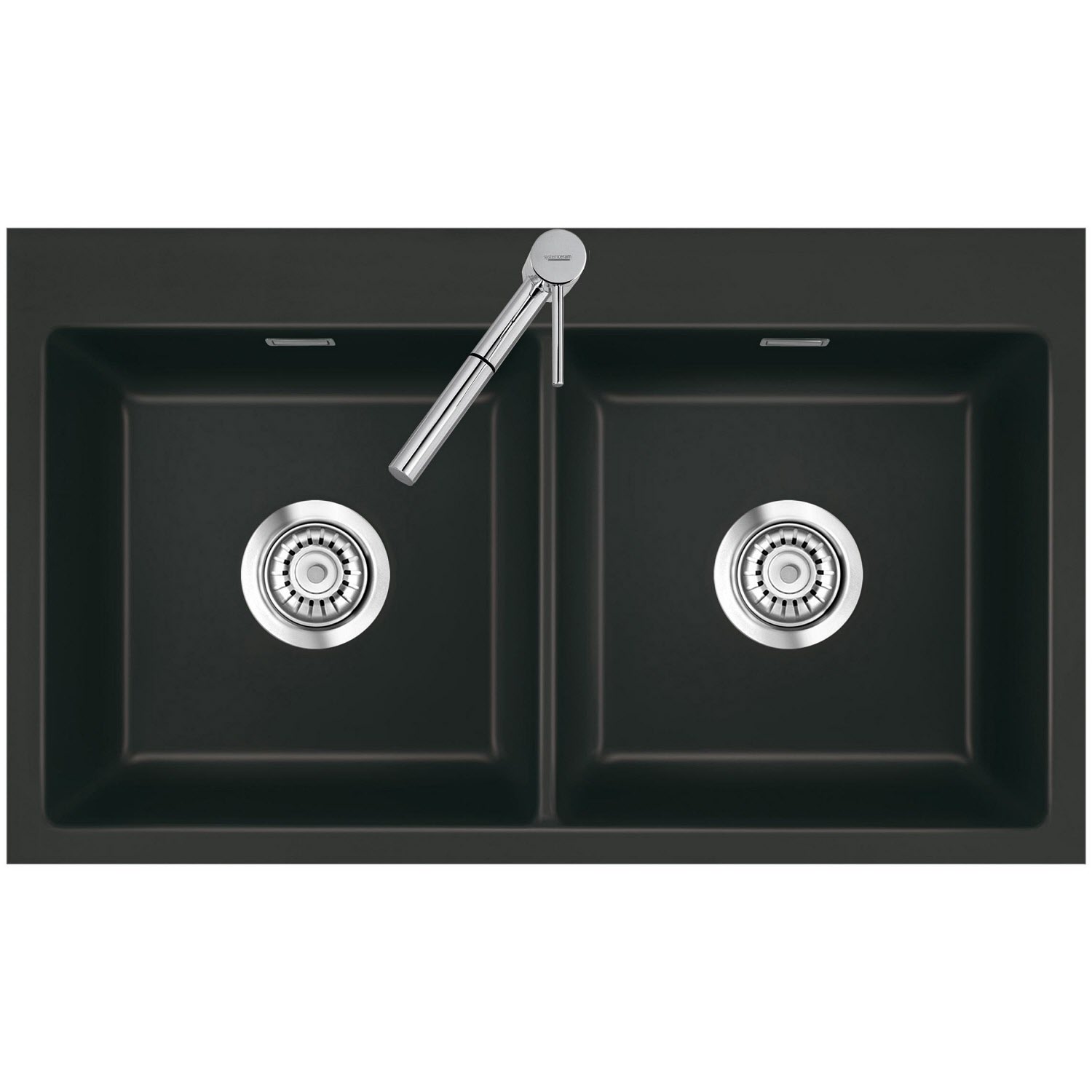 Systemceram Keradomo Mera Twin F Spüle für flächenbündigen Einbau mit Handbetätigung, inkl. Armaturbohrung
