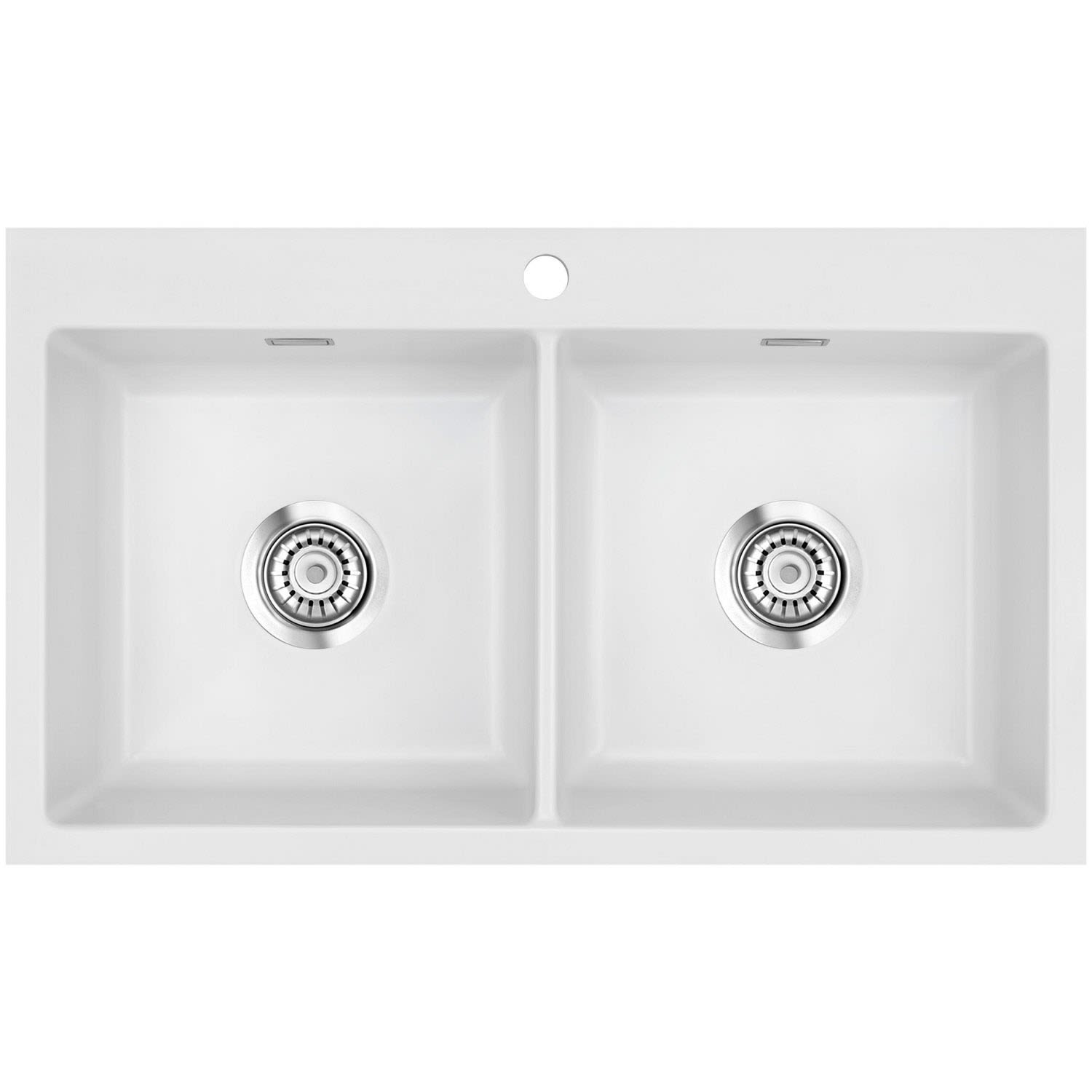 Systemceram Keradomo Mera Twin F Spüle für flächenbündigen Einbau mit Excenterbetätigung, inkl. Armaturbohrung