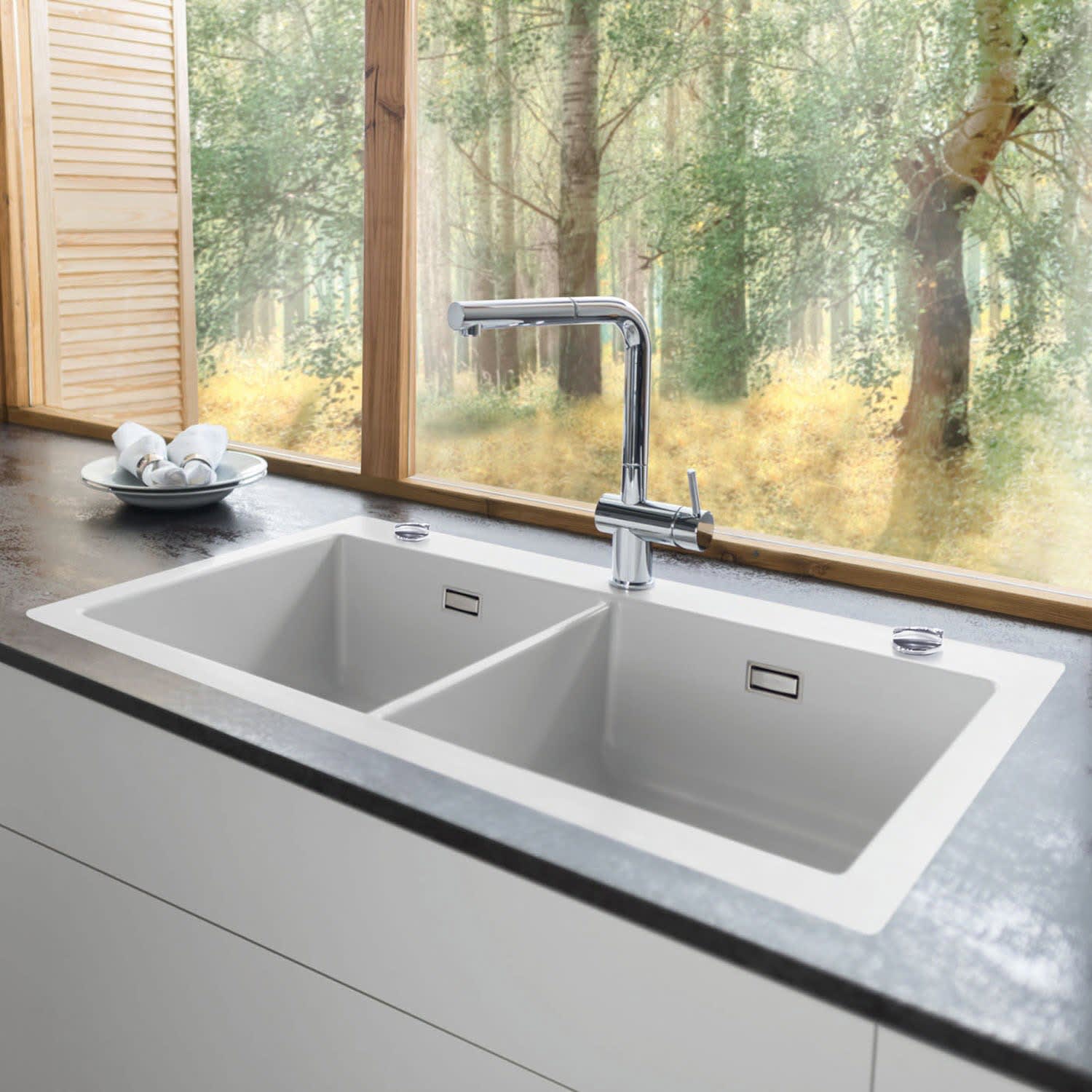 Systemceram Keradomo Mera Twin F Spüle für flächenbündigen Einbau mit Excenterbetätigung, inkl. Armaturbohrung