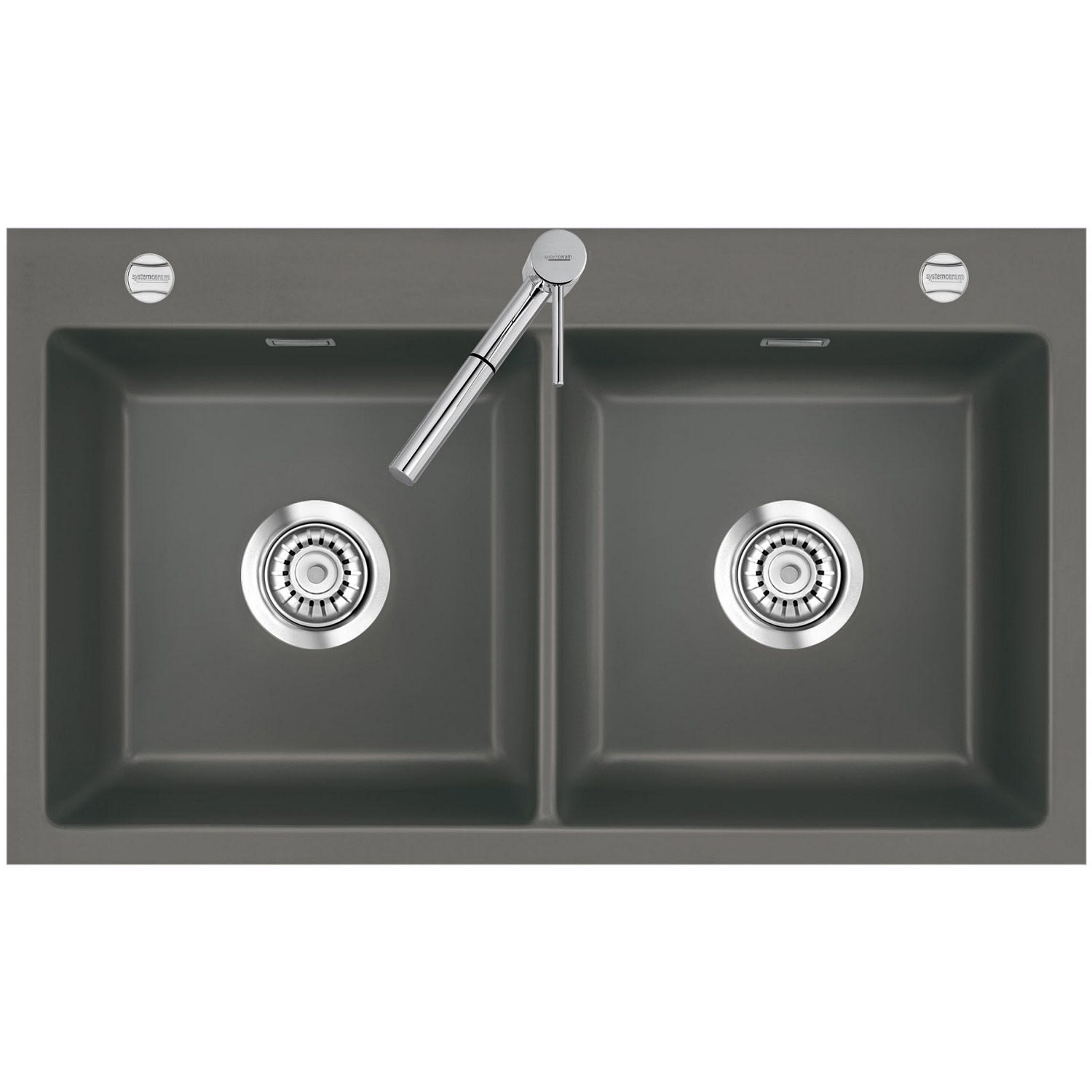Systemceram Keradomo Mera Twin F Spüle für flächenbündigen Einbau mit Excenterbetätigung, inkl. Armaturbohrung