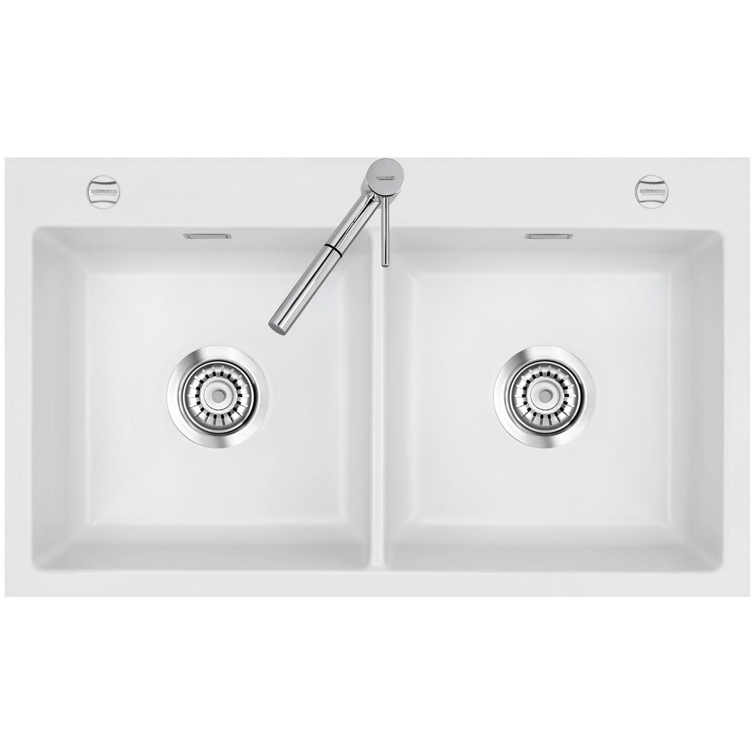 Systemceram Keradomo Mera Twin F Spüle für flächenbündigen Einbau mit Excenterbetätigung, inkl. Armaturbohrung