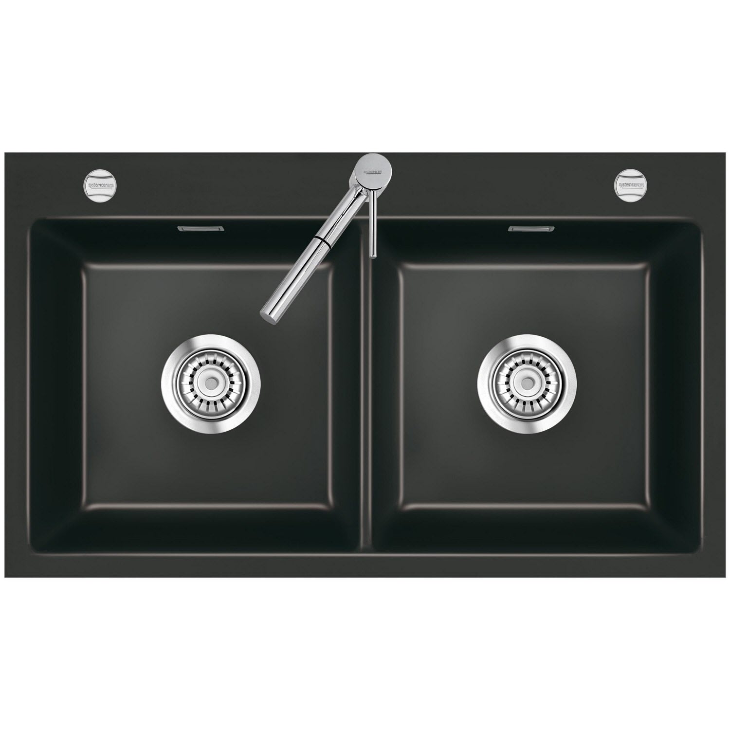 Systemceram Keradomo Mera Twin F Spüle für flächenbündigen Einbau mit Excenterbetätigung, inkl. Armaturbohrung