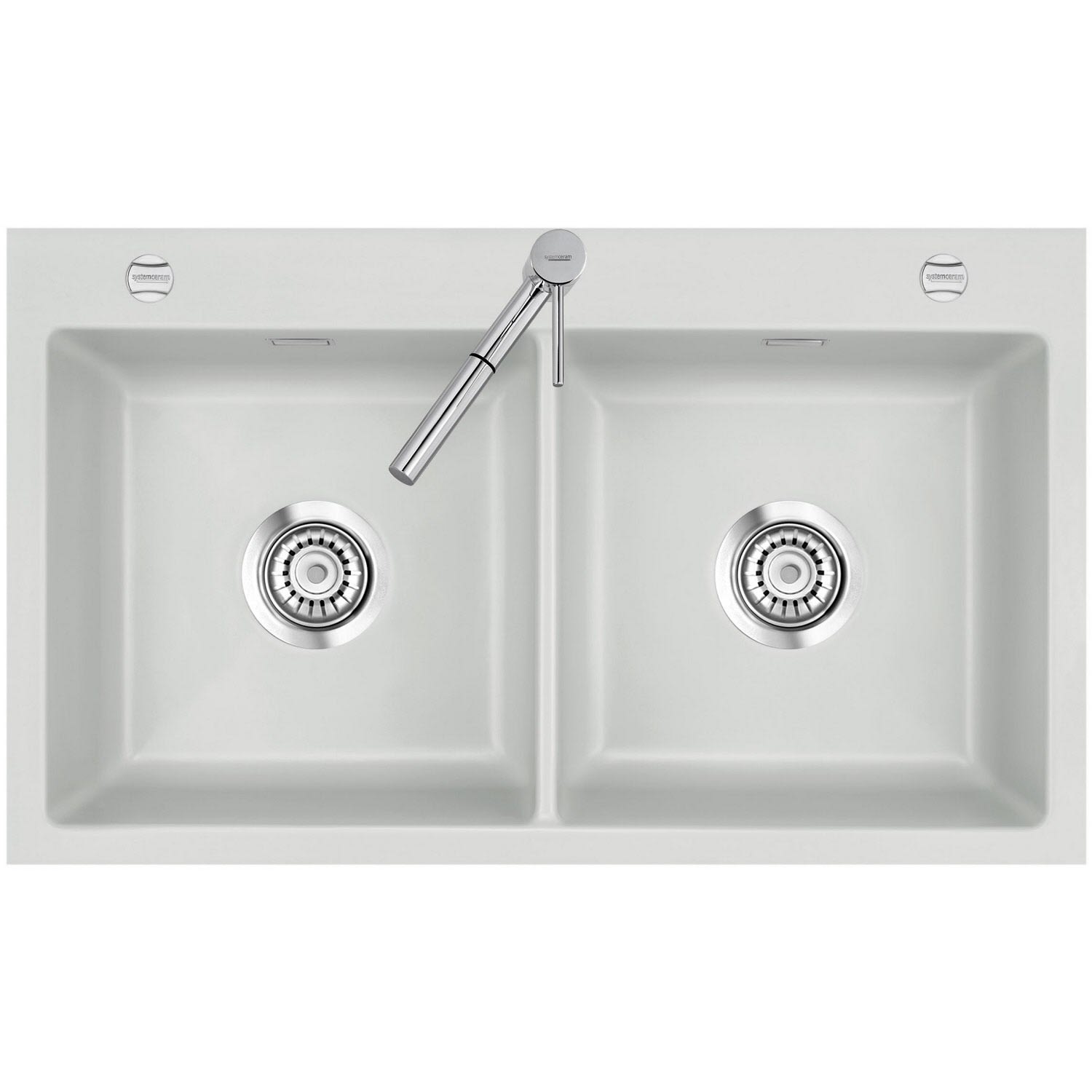 Systemceram Keradomo Mera Twin F Spüle für flächenbündigen Einbau mit Excenterbetätigung, inkl. Armaturbohrung