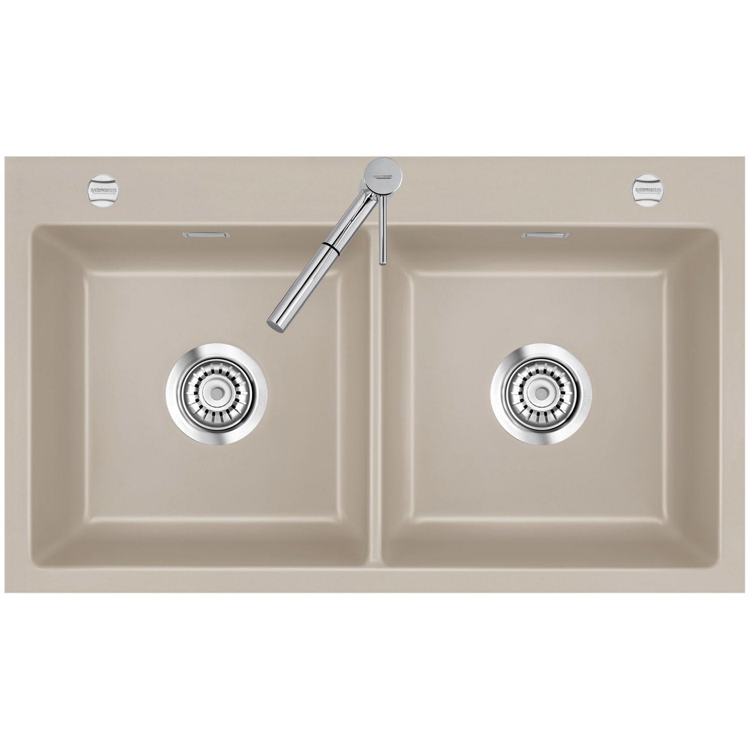 Systemceram Keradomo Mera Twin F Spüle für flächenbündigen Einbau mit Excenterbetätigung, inkl. Armaturbohrung