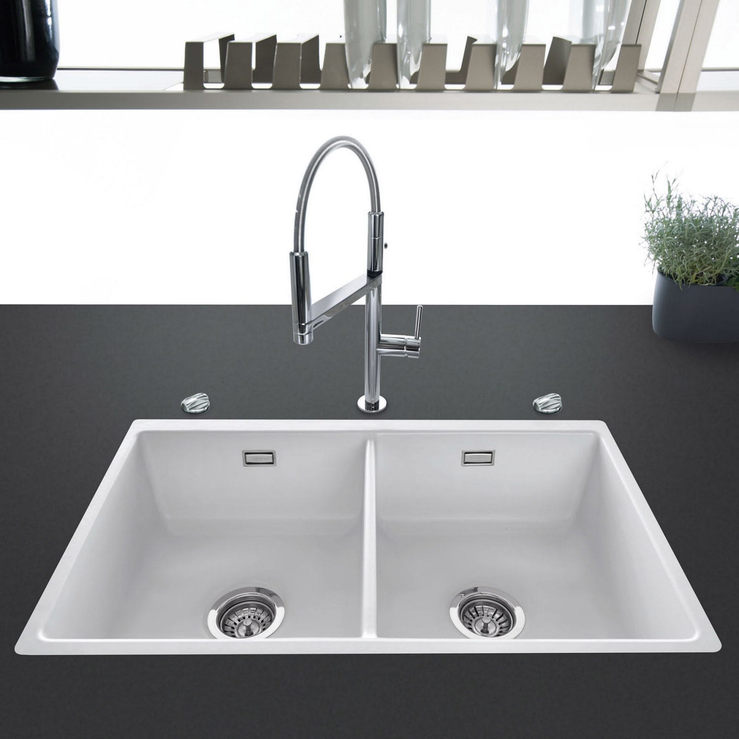 Systemceram Keradomo Mera Twin F/o Spüle für flächenbündigen Einbau mit Excenterbetätigung, ohne Hahnlochbohrung