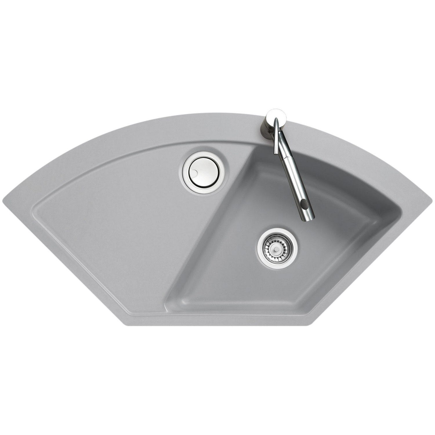 Systemceram Keradomo Mera Eck F Spüle für flächenbündigen Einbau mit Handbetätigung, inkl. Armaturbohrung