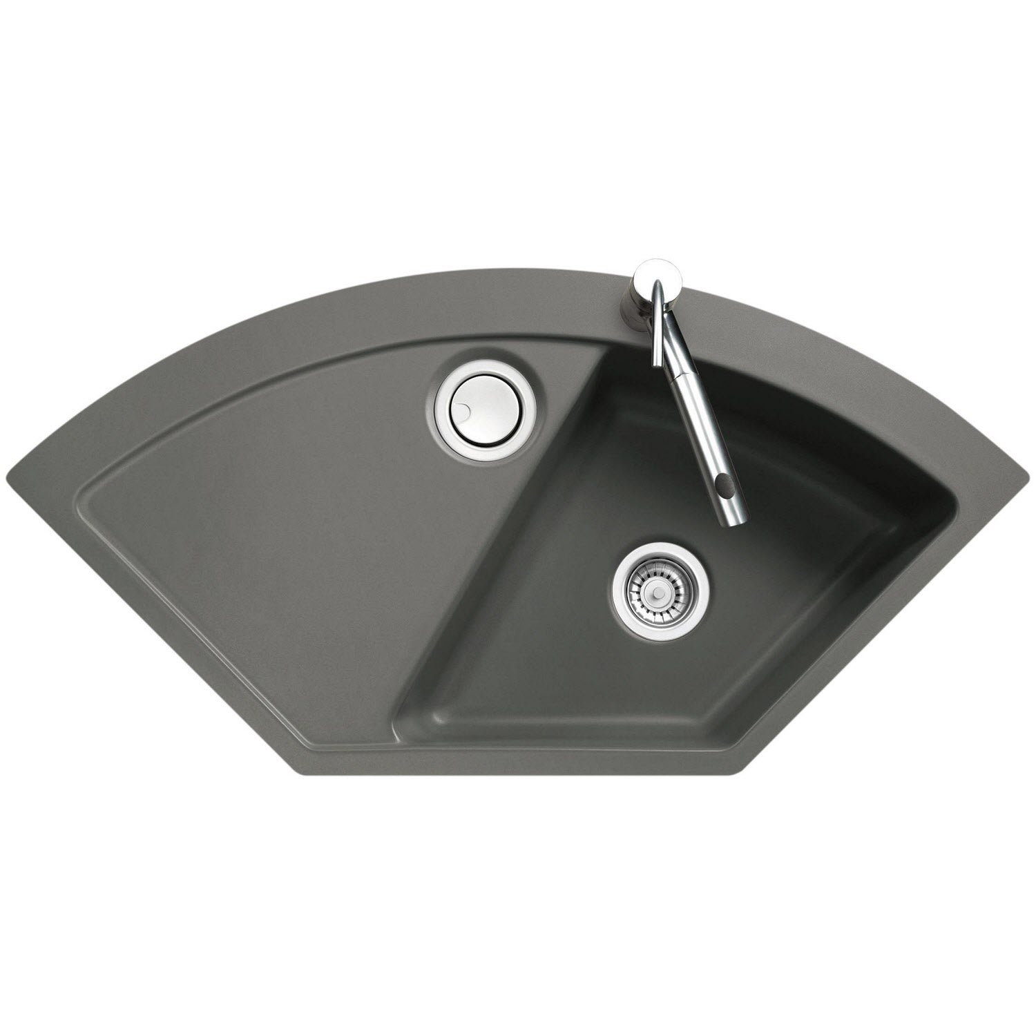 Systemceram Keradomo Mera Eck F Spüle für flächenbündigen Einbau mit Handbetätigung, inkl. Armaturbohrung