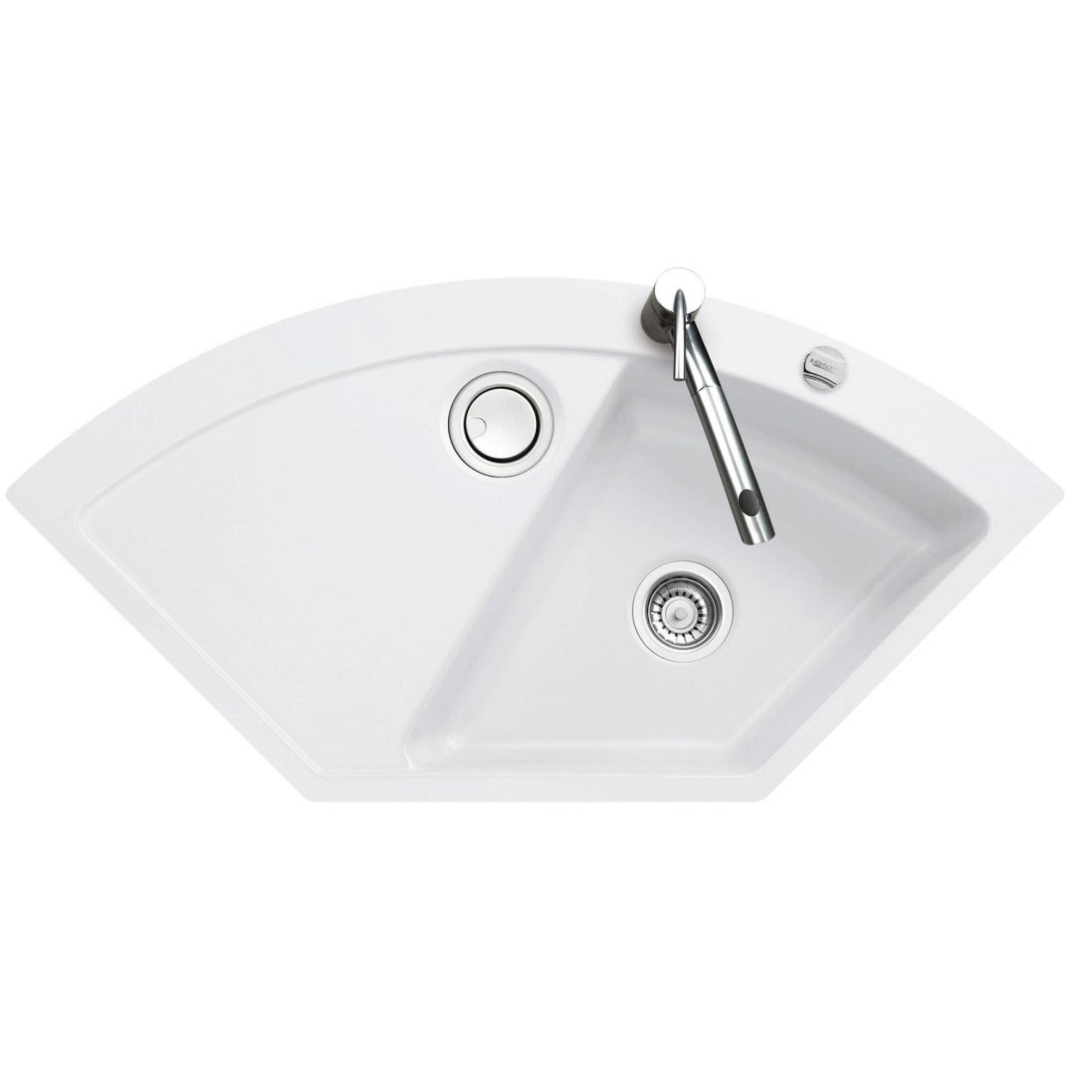 Systemceram Keradomo Mera Eck F Spüle für flächenbündigen Einbau mit Excenterbetätigung, inkl. Armaturbohrung