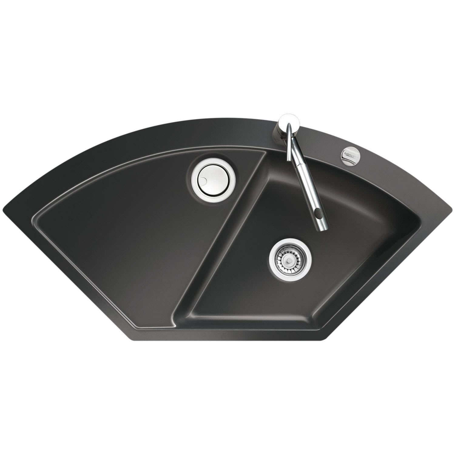 Systemceram Keradomo Mera Eck F Spüle für flächenbündigen Einbau mit Excenterbetätigung, inkl. Armaturbohrung