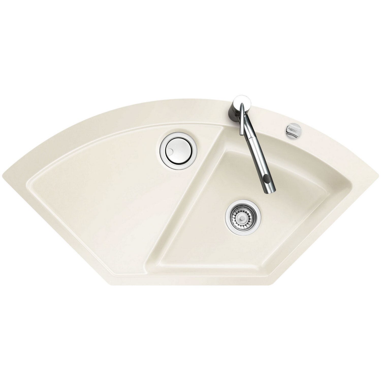 Systemceram Keradomo Mera Eck F Spüle für flächenbündigen Einbau mit Excenterbetätigung, inkl. Armaturbohrung