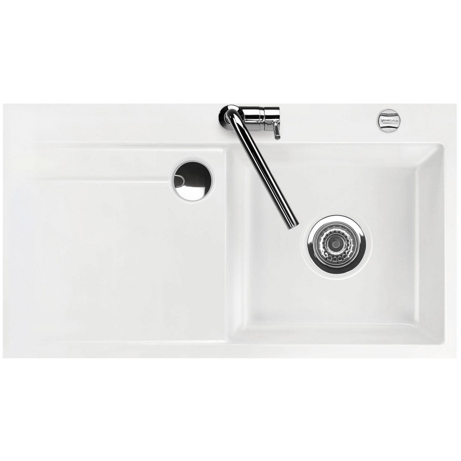 Systemceram Keradomo Stema 90 F Spüle rechts für flächenbündigen Einbau mit Excenterbetätigung, inkl. Armaturbohrung