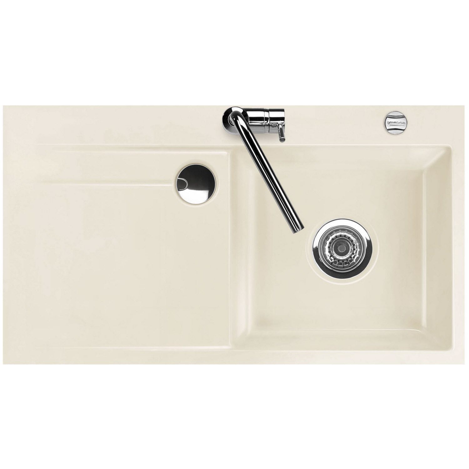 Systemceram Keradomo Stema 90 F Spüle rechts für flächenbündigen Einbau mit Excenterbetätigung, inkl. Armaturbohrung