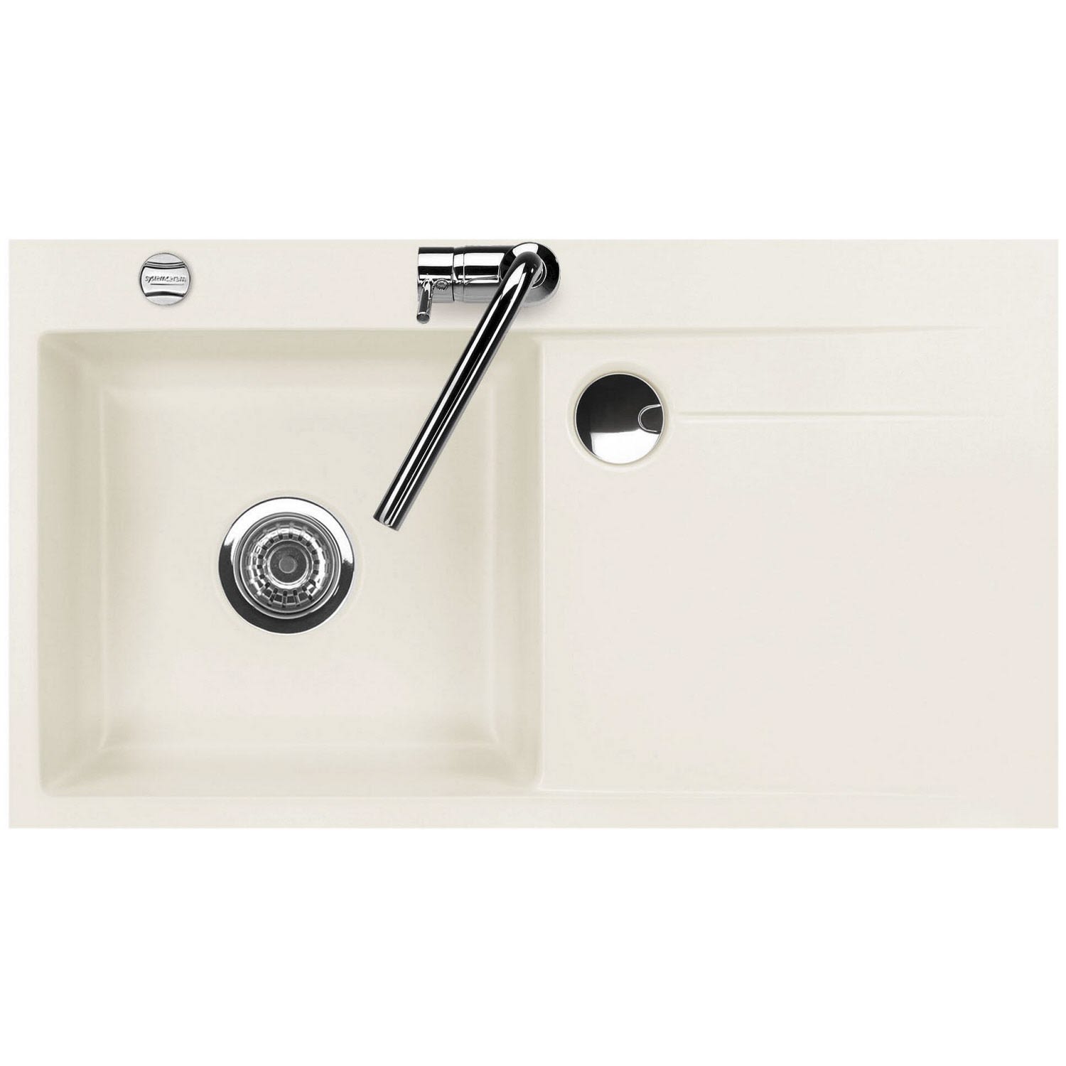 Systemceram Keradomo Stema 90 F Spüle links für flächenbündigen Einbau mit Excenterbetätigung, inkl. Armaturbohrung