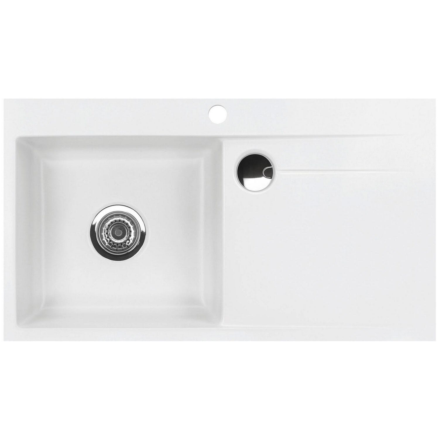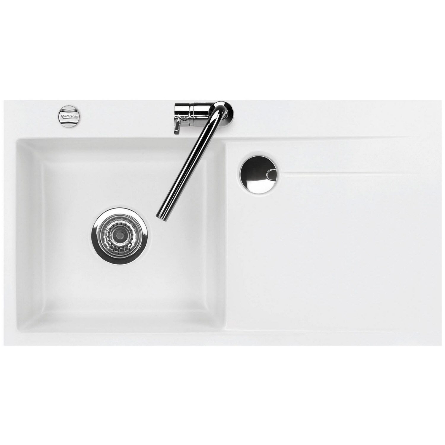 Systemceram Keradomo Stema 90 F Spüle links für flächenbündigen Einbau mit Excenterbetätigung, inkl. Armaturbohrung