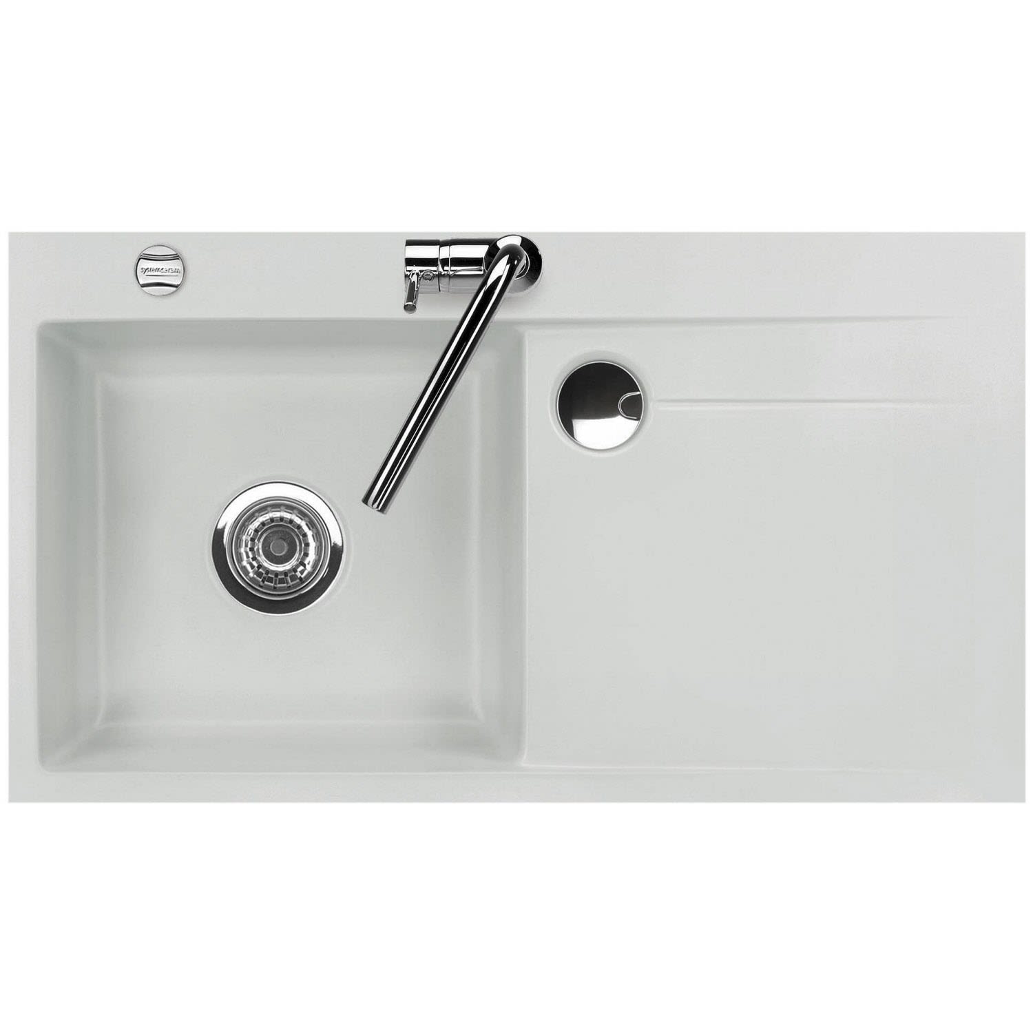 Systemceram Keradomo Stema 90 F Spüle links für flächenbündigen Einbau mit Excenterbetätigung, inkl. Armaturbohrung