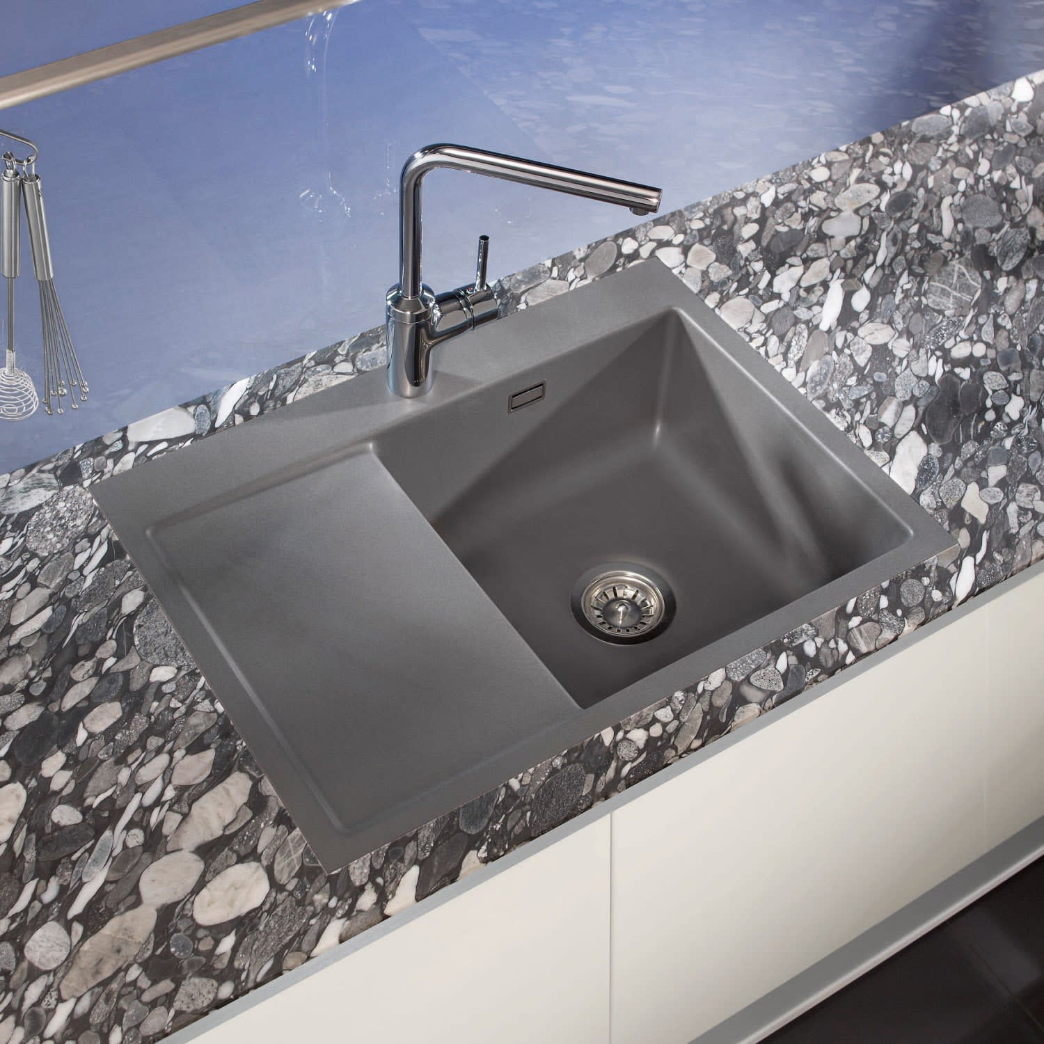 Systemceram Keradomo Mera 70 F Spüle rechts für flächenbündigen Einbau mit Handbetätigung, inkl. Armaturbohrung