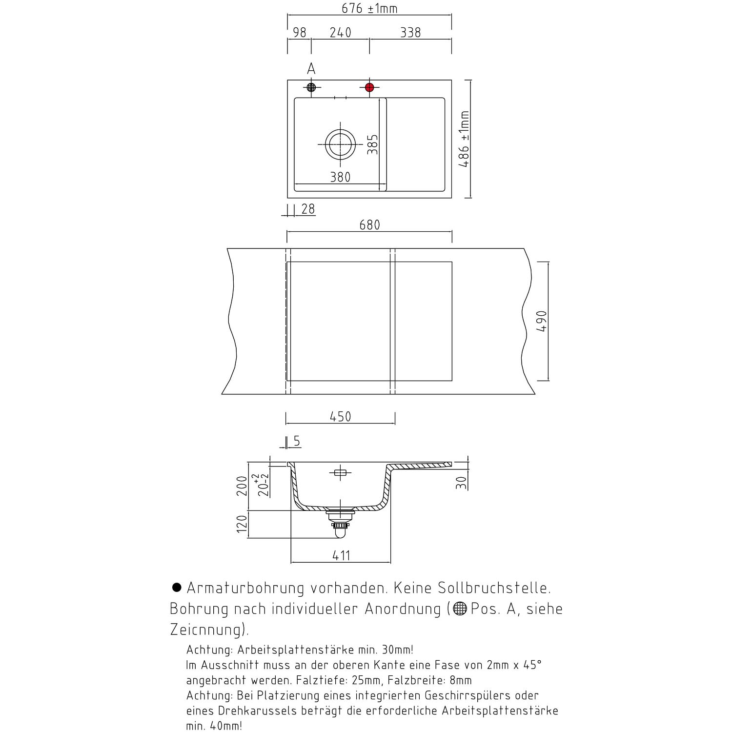 - inkl. Armaturbohrung