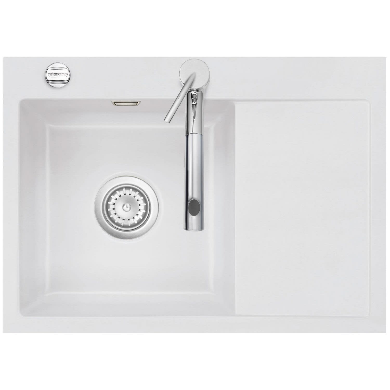 Systemceram Keradomo Mera 70 F Spüle links für flächenbündigen Einbau mit Excenterbetätigung, inkl. Armaturbohrung