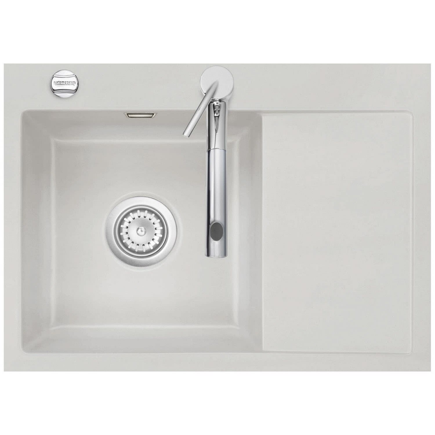 Systemceram Keradomo Mera 70 F Spüle links für flächenbündigen Einbau mit Excenterbetätigung, inkl. Armaturbohrung