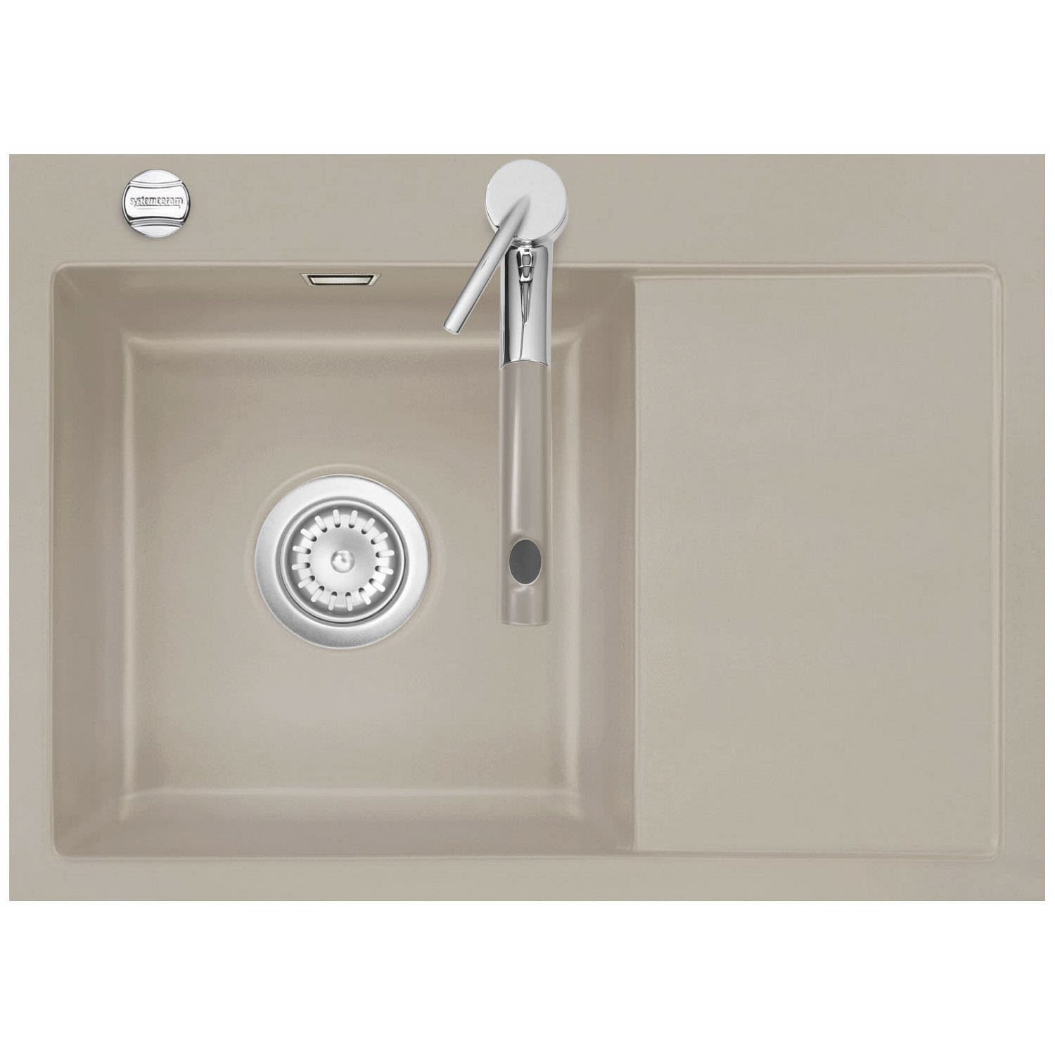 Systemceram Keradomo Mera 70 F Spüle links für flächenbündigen Einbau mit Excenterbetätigung, inkl. Armaturbohrung