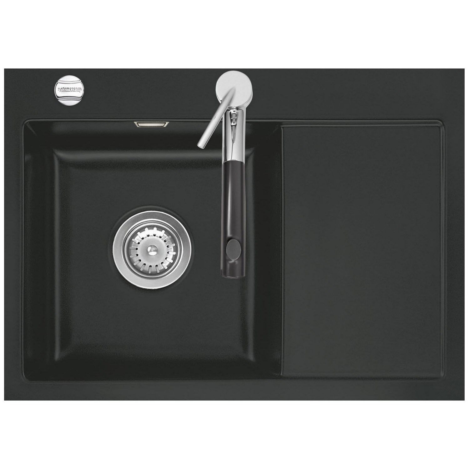 Systemceram Keradomo Mera 70 F Spüle links für flächenbündigen Einbau mit Excenterbetätigung, inkl. Armaturbohrung